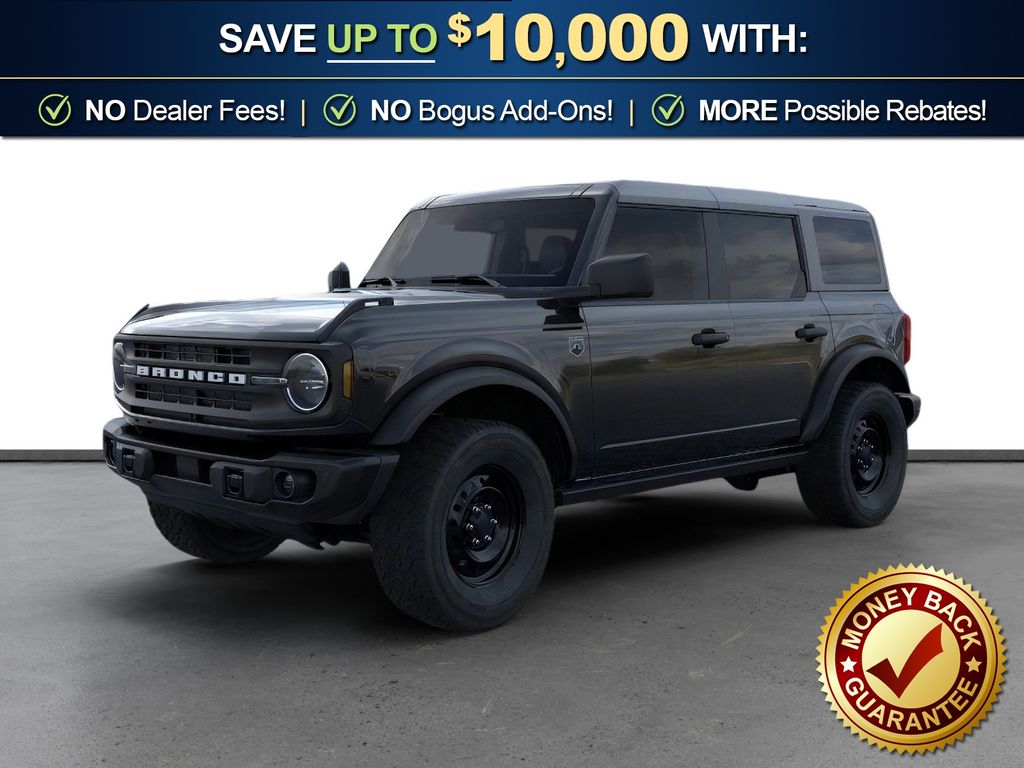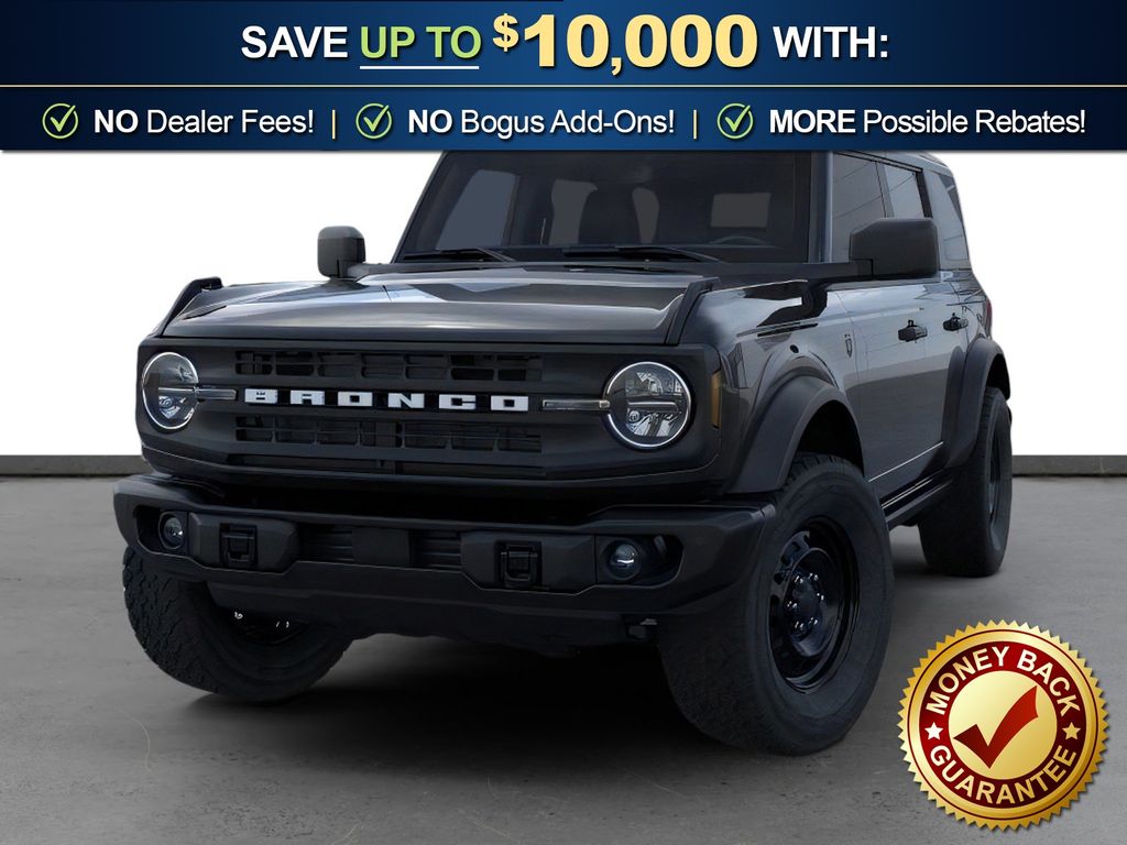 Dealer Discount of $1,018 off MSRP Shadow Black 2026 Ford Bronco Big Bend FCT 4WD 10-Speed Automatic 2.3L EcoBoost I-4 4-Wheel Disc Brakes, 7 Speakers, ABS brakes, Air Conditioning, Alloy wheels, AM/FM radio: SiriusXM with 360L, AM/FM Stereo, Auto High-beam Headlights, Auxiliary Switches, Black Diamond Package, Brake assist, Carbonized Gray Molded-in-Color Hard Top, Cloth Bucket Seats, Compass, Delay-off headlights, Driver door bin, Driver vanity mirror, Dual front impact airbags, Dual front side impact airbags, Electronic Stability Control, Emergency communication system: 911 Assist, Exterior Parking Camera Rear, Ford Connectivity Package (1-Year Included), Front anti-roll bar, Front Bucket Seats, Front Center Armrest, Front License Plate Bracket, Front reading lights, Front wheel independent suspension, Fully automatic headlights, Hard Top Sound Deadening Headliner, Heated door mirrors, Illuminated entry, Integrated roll-over protection, LED Fog Lamps, Low tire pressure warning, Occupant sensing airbag, Outside temperature display, Overhead airbag, Overhead console, Panic alarm, Passenger door bin, Passenger vanity mirror, Powder Coated Steel Front and Rear Bumpers, Power door mirrors, Power steering, Power windows, Radio data system, Rear-Window Defroster and Washer, Remote keyless entry, Rock Rails, Security system, SiriusXM with 360L, Speed control, Split folding rear seat, Steering wheel mounted audio controls, SYNC 4, Tachometer, Telescoping steering wheel, Tilt steering wheel, Traction control, Trip computer, Variably intermittent wipers, Washout Capable Rubberized Flooring, Wheels: 17" Black High Gloss-Painted Steel, Wheels: 17" Carbonized Gray-Painted Aluminum.