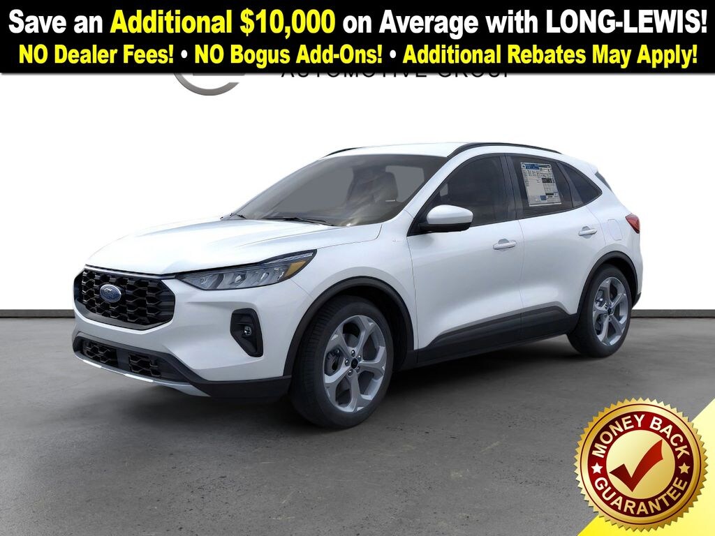 Space Silver Metallic 2026 Ford Escape Hybrid ST-Line Select NFT AWD eCVT 2.5L iVCT 2.5L iVCT, 10-Way Power Driver's Seat w/Memory, 2.91 Axle Ratio, 4-Way Manual Front Passenger Seat, 4-Wheel Disc Brakes, 6 Speakers, 8-Way Power Driver Seat, ABS brakes, Adaptive Cruise Control with Stop-and-Go, Air Conditioning, Alloy wheels, AM/FM radio: SiriusXM 360L, Auto High-beam Headlights, Automatic temperature control, Brake assist, Bumpers: body-color, Compass, Connected Navigation (1-Year Included), Delay-off headlights, Digital Rear View Camera, Driver door bin, Driver vanity mirror, Dual front impact airbags, Dual front side impact airbags, Electronic Fuel Door Release, Electronic Stability Control, Emergency communication system: SYNC 4 911 Assist, Evasive Steering Assist, Ford App, Ford Co-Pilot360 Assist+, Four wheel independent suspension, Front anti-roll bar, Front Bucket Seats, Front Center Armrest, Front dual zone A/C, Front fog lights, Front License Plate Bracket, Front reading lights, Fully automatic headlights, Heated door mirrors, Heated front seats, Heated steering wheel, Illuminated entry, Intersection Assist, Knee airbag, Low tire pressure warning, Memory seat, Neutral Towing Capability, Occupant sensing airbag, Outside temperature display, Overhead airbag, Overhead console, Panic alarm, Partial Vinyl/Cloth Heated Front Sport Contour Bucket Seats with Red Stitching, Passenger door bin, Passenger vanity mirror, Pedestrian Alert Sounder, Power door mirrors, Power driver seat, Power Liftgate, Power steering, Power windows, Predictive Speed Assist, Radio data system, Radio: AM/FM Stereo with SiriusXM 360L, Rear anti-roll bar, Rear Parking Sensor, Rear reading lights, Rear seat center armrest, Rear window defroster, Rear window wiper, Remote keyless entry, Speed control, Speed-sensing steering, Speed-Sensitive Wipers, Split folding rear seat, Spoiler, Sport steering wheel, Steering wheel mounted audio controls, SYNC 4, SYNC 4 with Enhanced Voice Recognition, Tachometer, Tech Pack #1, Telescoping steering wheel, Tilt steering wheel, Traction control, Trip computer, Variably intermittent wipers, Wheels: 18" Rock Metallic Painted Aluminum, 2.5L iVCT.