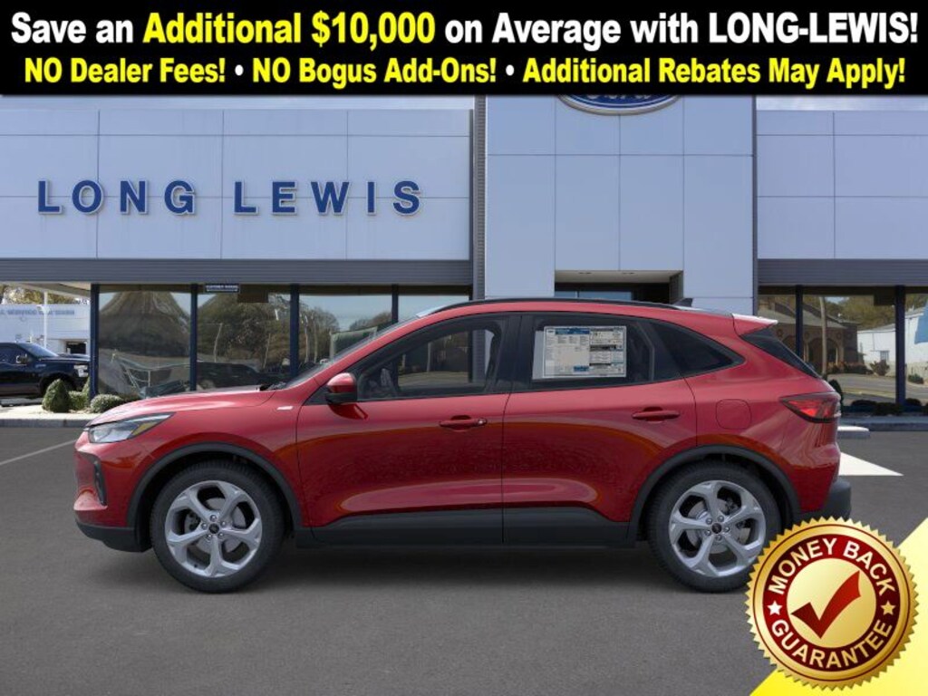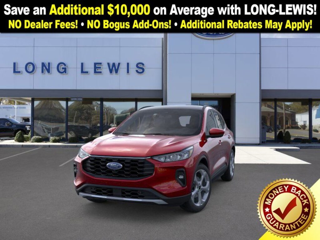 rapid red metallic tinted clearcoat 2026 Ford Escape Hybrid ST-Line Select AWD eCVT 2.5L iVCT 2.5L iVCT, 10-Way Power Driver's Seat w/Memory, 2.91 Axle Ratio, 4-Way Manual Front Passenger Seat, 4-Wheel Disc Brakes, 6 Speakers, 8-Way Power Driver Seat, ABS brakes, Air Conditioning, Alloy wheels, AM/FM radio: SiriusXM 360L, Auto High-beam Headlights, Automatic temperature control, Brake assist, Bumpers: body-color, Compass, Delay-off headlights, Driver door bin, Driver vanity mirror, Dual front impact airbags, Dual front side impact airbags, Electronic Fuel Door Release, Electronic Stability Control, Emergency communication system: SYNC 4 911 Assist, Ford App, Four wheel independent suspension, Front anti-roll bar, Front Bucket Seats, Front Center Armrest, Front dual zone A/C, Front fog lights, Front reading lights, Fully automatic headlights, Heated door mirrors, Heated front seats, Heated steering wheel, Illuminated entry, Knee airbag, Low tire pressure warning, Memory seat, Neutral Towing Capability, Occupant sensing airbag, Outside temperature display, Overhead airbag, Overhead console, Panic alarm, Partial Vinyl/Cloth Heated Front Sport Contour Bucket Seats with Red Stitching, Passenger door bin, Passenger vanity mirror, Pedestrian Alert Sounder, Power door mirrors, Power driver seat, Power Liftgate, Power steering, Power windows, Radio data system, Radio: AM/FM Stereo with SiriusXM 360L, Rear anti-roll bar, Rear reading lights, Rear seat center armrest, Rear window defroster, Rear window wiper, Remote keyless entry, Speed control, Speed-sensing steering, Speed-Sensitive Wipers, Split folding rear seat, Spoiler, Sport steering wheel, Steering wheel mounted audio controls, SYNC 4, Tachometer, Telescoping steering wheel, Tilt steering wheel, Traction control, Trip computer, Variably intermittent wipers, Wheels: 18" Rock Metallic Painted Aluminum, 2.5L iVCT.