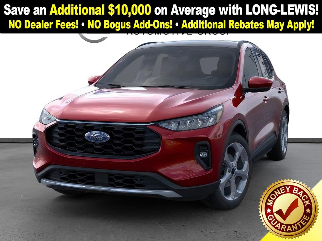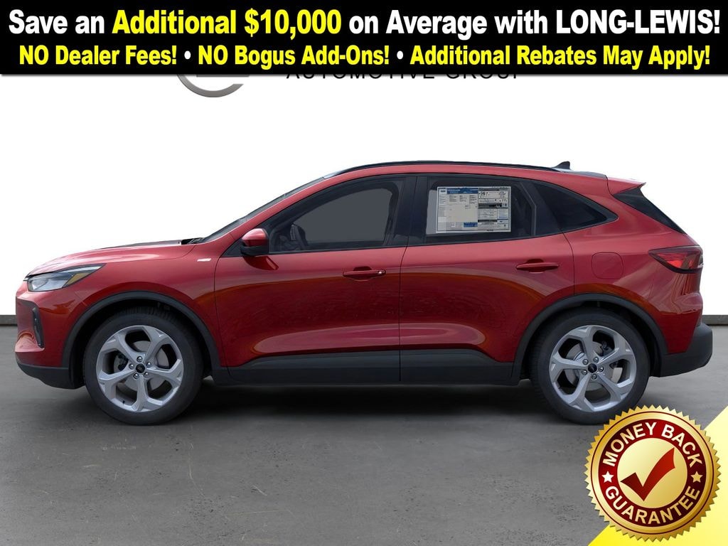 rapid red metallic tinted clearcoat 2026 Ford Escape Hybrid ST-Line Select NFT AWD eCVT 2.5L iVCT 2.5L iVCT, 10-Way Power Driver's Seat w/Memory, 2.91 Axle Ratio, 4-Way Manual Front Passenger Seat, 4-Wheel Disc Brakes, 6 Speakers, 8-Way Power Driver Seat, ABS brakes, Air Conditioning, Alloy wheels, AM/FM radio: SiriusXM 360L, Auto High-beam Headlights, Automatic temperature control, Brake assist, Bumpers: body-color, Compass, Delay-off headlights, Driver door bin, Driver vanity mirror, Dual front impact airbags, Dual front side impact airbags, Electronic Fuel Door Release, Electronic Stability Control, Emergency communication system: SYNC 4 911 Assist, Ford App, Four wheel independent suspension, Front anti-roll bar, Front Bucket Seats, Front Center Armrest, Front dual zone A/C, Front fog lights, Front reading lights, Fully automatic headlights, Heated door mirrors, Heated front seats, Heated steering wheel, Illuminated entry, Knee airbag, Low tire pressure warning, Memory seat, Neutral Towing Capability, Occupant sensing airbag, Outside temperature display, Overhead airbag, Overhead console, Panic alarm, Partial Vinyl/Cloth Heated Front Sport Contour Bucket Seats with Red Stitching, Passenger door bin, Passenger vanity mirror, Pedestrian Alert Sounder, Power door mirrors, Power driver seat, Power Liftgate, Power steering, Power windows, Radio data system, Radio: AM/FM Stereo with SiriusXM 360L, Rear anti-roll bar, Rear reading lights, Rear seat center armrest, Rear window defroster, Rear window wiper, Remote keyless entry, Speed control, Speed-sensing steering, Speed-Sensitive Wipers, Split folding rear seat, Spoiler, Sport steering wheel, Steering wheel mounted audio controls, SYNC 4, Tachometer, Telescoping steering wheel, Tilt steering wheel, Traction control, Trip computer, Variably intermittent wipers, Wheels: 18" Rock Metallic Painted Aluminum, 2.5L iVCT.
