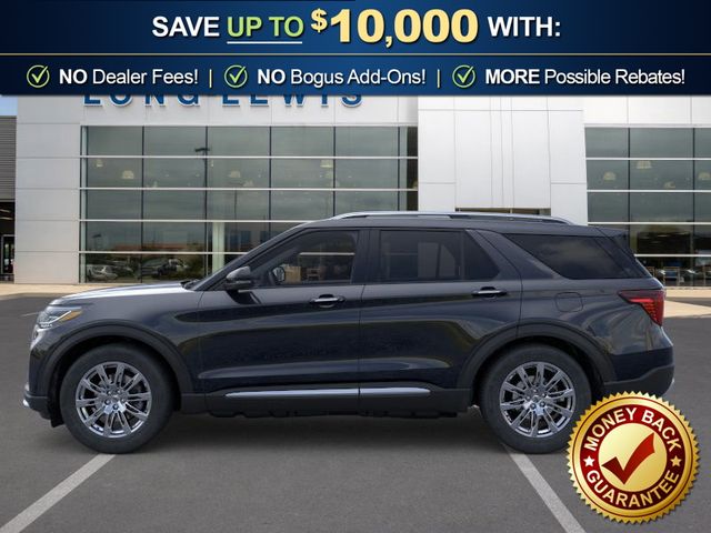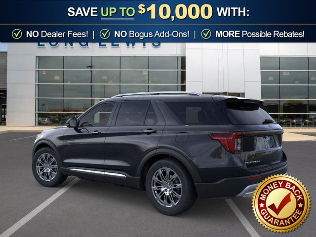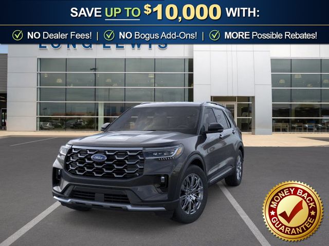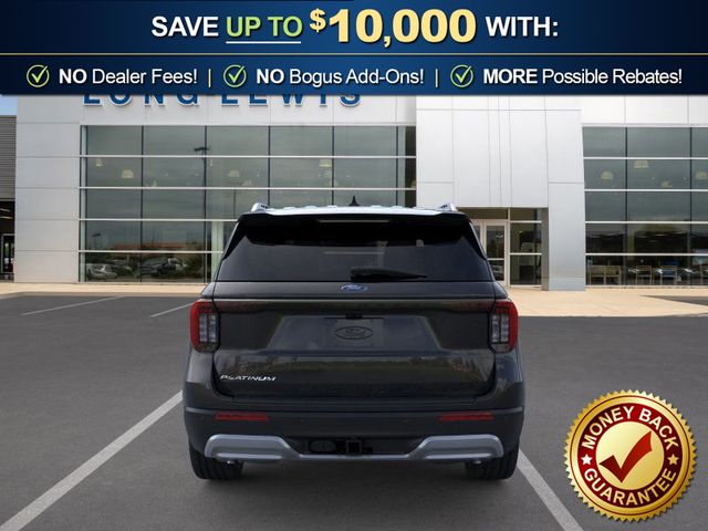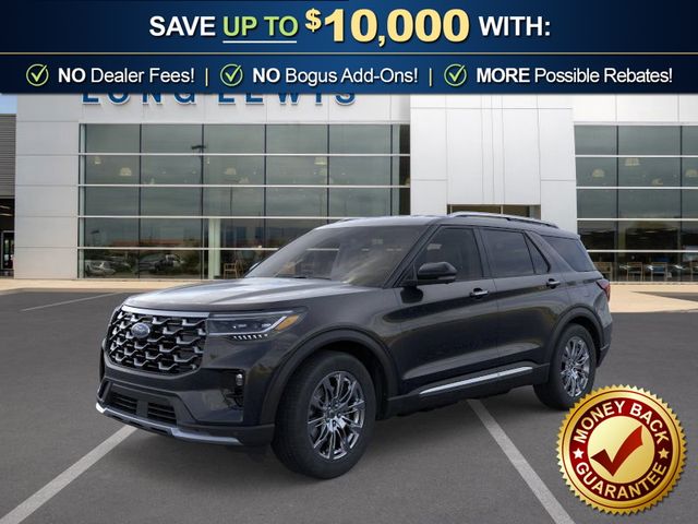 2026 Ford Explorer Platinum NFT Agate Black Metallic Platinum NFT RWD 10-Speed Automatic 2.3L EcoBoost I-4 14 Speakers, 3rd row seats: bench, 4-Wheel Disc Brakes, ABS brakes, ActiveX Trimmed Captain's Chairs, Air Conditioning, Alloy wheels, AM/FM radio: SiriusXM with 360L, Apple CarPlay/Android Auto, Auto High-beam Headlights, Auto-dimming door mirrors, Auto-dimming Rear-View mirror, Automatic temperature control, Brake assist, Bumpers: body-color, Compass, Delay-off headlights, Driver door bin, Driver vanity mirror, Dual front impact airbags, Dual front side impact airbags, Electronic Stability Control, Emergency communication system: 911 Assist, Equipment Group 600A Standard Package, Exterior Parking Camera Rear, Ford Connectivity Package (one-Time Purchase - 7 Years), Four wheel independent suspension, Front anti-roll bar, Front Bucket Seats, Front Center Armrest, Front dual zone A/C, Front fog lights, Front reading lights, Fully automatic headlights, Garage door transmitter, Heated door mirrors, Heated front seats, Heated rear seats, Heated steering wheel, Illuminated entry, Knee airbag, Leather steering wheel, Low tire pressure warning, Memory seat, Navigation System, Occupant sensing airbag, Outside temperature display, Overhead airbag, Overhead console, Panic alarm, Passenger door bin, Passenger vanity mirror, Power door mirrors, Power driver seat, Power Liftgate, Power passenger seat, Power steering, Power windows, Radio data system, Radio: B&O Sound System by Bang & Olufsen with HD, Rain sensing wipers, Rear air conditioning, Rear anti-roll bar, Rear reading lights, Rear window defroster, Rear window wiper, Remote keyless entry, Security system, Speed control, Speed-sensing steering, Speed-Sensitive Wipers, Split folding rear seat, Spoiler, Steering wheel mounted audio controls, Tachometer, Telescoping steering wheel, Tilt steering wheel, Traction control, Trip computer, Turn signal indicator mirrors, Variably intermittent wipers, Ventilated front seats, Wheels: 20" Luster Nickel-Painted Aluminum.