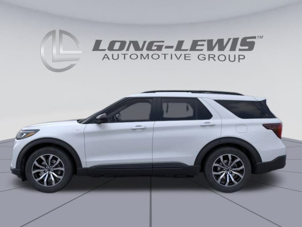 Space White Metallic 2026 Ford Explorer ST-Line RWD 10-Speed Automatic 2.3L EcoBoost I-4 10 Speakers, 3rd row seats: bench, 4-Wheel Disc Brakes, ABS brakes, Air Conditioning, Alloy wheels, AM/FM radio: SiriusXM with 360L, Apple CarPlay/Android Auto, Auto High-beam Headlights, Automatic temperature control, BlueCruise (Equipment + 1-Year + 90-Day Plan), BlueCruise Hardware, Brake assist, Bumpers: body-color, Compass, Delay-off headlights, Driver door bin, Driver vanity mirror, Dual front impact airbags, Dual front side impact airbags, Electronic Stability Control, Emergency communication system: 911 Assist, Exterior Parking Camera Rear, Four wheel independent suspension, Front anti-roll bar, Front Bucket Seats, Front Center Armrest, Front dual zone A/C, Front fog lights, Front reading lights, Fully automatic headlights, Garage door transmitter, Heated door mirrors, Heated front seats, Heated steering wheel, Heated Unique Cloth Captain's Chairs, Illuminated entry, Knee airbag, Leather steering wheel, Low tire pressure warning, Navigation System, Occupant sensing airbag, Outside temperature display, Overhead airbag, Overhead console, Panic alarm, Passenger door bin, Passenger vanity mirror, Power door mirrors, Power driver seat, Power Liftgate, Power passenger seat, Power steering, Power windows, Radio: B&O Sound System by Bang & Olufsen, Rear air conditioning, Rear anti-roll bar, Rear reading lights, Rear window defroster, Rear window wiper, Remote keyless entry, Security system, Speed control, Speed-sensing steering, Speed-Sensitive Wipers, Split folding rear seat, Spoiler, Steering wheel mounted audio controls, Tachometer, Telescoping steering wheel, Tilt steering wheel, Traction control, Trip computer, Variably intermittent wipers, Wheels: 20" Ebony-Painted Machined Aluminum.