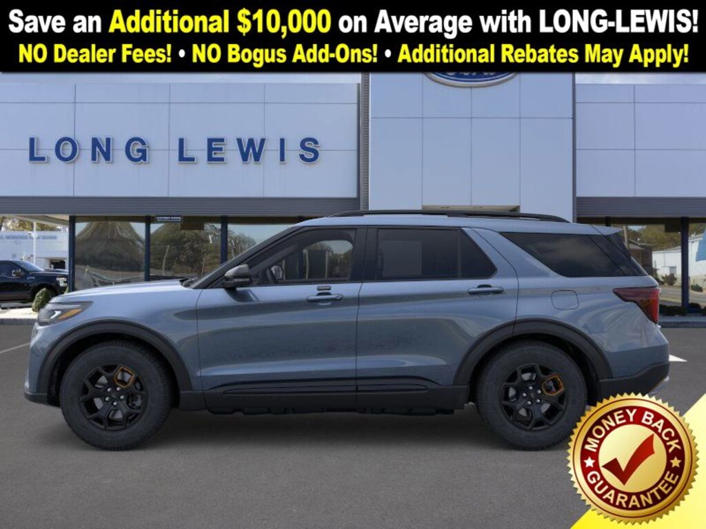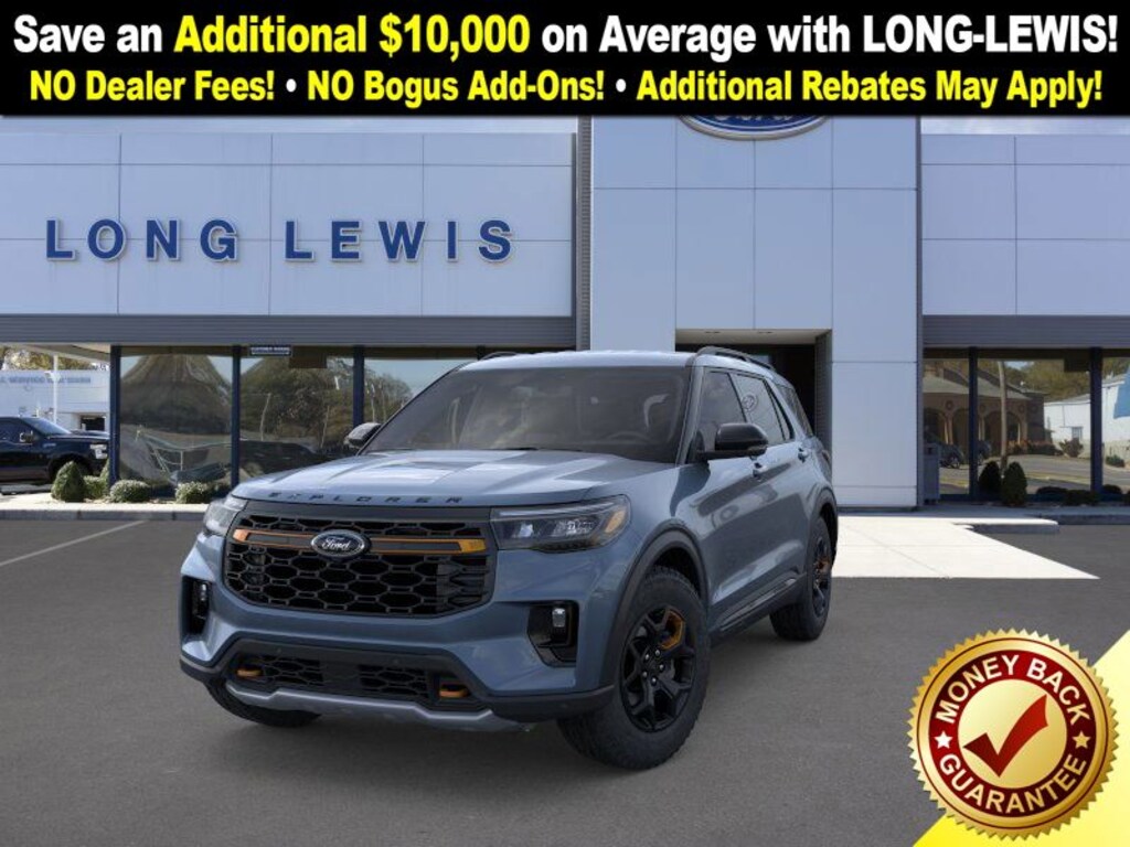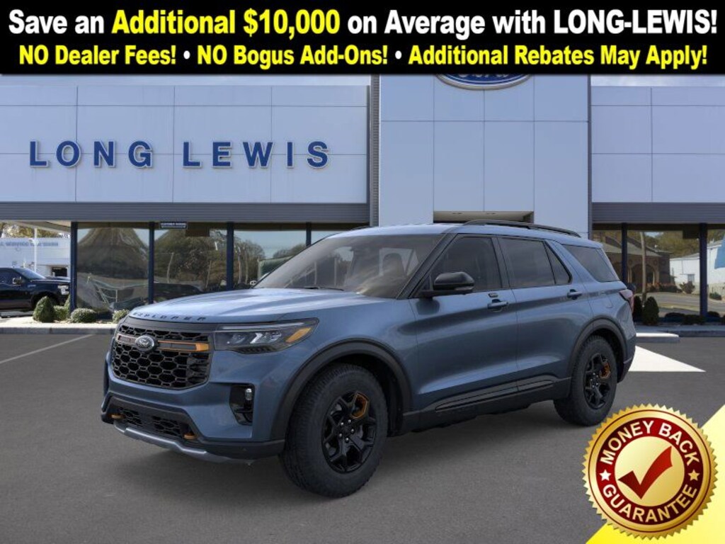 Vapor Blue Metallic 2026 Ford Explorer Tremor fctp 4WD 10-Speed Automatic 2.3L EcoBoost I-4 4WD, ABS brakes, Active Cruise Control, Alloy wheels, Compass, Electronic Stability Control, Front dual zone A/C, Heated door mirrors, Heated front seats, Heated rear seats, Illuminated entry, Low tire pressure warning, Navigation System, Power Liftgate, Remote keyless entry, Traction control, 10 Speakers, 3rd row seats: bench, 4-Wheel Disc Brakes, Air Conditioning, AM/FM radio: SiriusXM with 360L, Apple CarPlay/Android Auto, Auto High-beam Headlights, Automatic temperature control, Brake assist, Bumpers: body-color, Delay-off headlights, Driver door bin, Driver vanity mirror, Dual front impact airbags, Dual front side impact airbags, Emergency communication system: 911 Assist, Exterior Parking Camera Rear, Four wheel independent suspension, Front anti-roll bar, Front Bucket Seats, Front Center Armrest, Front fog lights, Front reading lights, Fully automatic headlights, Heated steering wheel, Heated/Ventilated Miko Captain's Chairs, Knee airbag, Leather steering wheel, Occupant sensing airbag, Outside temperature display, Overhead airbag, Overhead console, Panic alarm, Passenger door bin, Passenger vanity mirror, Power door mirrors, Power driver seat, Power passenger seat, Power steering, Power windows, Radio: B&O Sound System by Bang & Olufsen, Rear air conditioning, Rear anti-roll bar, Rear reading lights, Rear window defroster, Rear window wiper, Security system, Speed control, Speed-sensing steering, Speed-Sensitive Wipers, Split folding rear seat, Spoiler, Sport steering wheel, Steering wheel mounted audio controls, Tachometer, Telescoping steering wheel, Tilt steering wheel, Trip computer, Variably intermittent wipers, Ventilated front seats, Wheels: 18" High Gloss Black-Painted Aluminum, 4WD, ABS brakes, Active Cruise Control, Alloy wheels, Compass, Electronic Stability Control, Front dual zone A/C, Heated door mirrors, Heated front seats, Heated rear seats, Illuminated entry, Low tire pressure warning, Navigation System, Power Liftgate, Remote keyless entry, Traction control.
