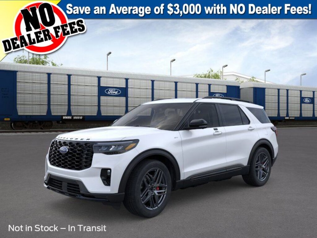 Star White Metallic Tri-Coat 2026 Ford Explorer ST-Line 4WD 10-Speed Automatic 2.3L EcoBoost I-4 4WD, 10 Speakers, 110V/150W AC Power Outlet, 2nd Row Captain's Chairs w/E-Z Entry & Armrest, 2nd Row Heated Seats, 3rd row seats: bench, 4-Wheel Disc Brakes, ABS brakes, Air Conditioning, Alloy wheels, AM/FM radio: SiriusXM with 360L, Ambient Lighting, Apple CarPlay/Android Auto, Auto High-beam Headlights, Auto-Dimming Interior Rear-View Mirror, Automatic temperature control, Brake assist, Bumpers: body-color, Compass, Delay-off headlights, Driver door bin, Driver vanity mirror, Dual front impact airbags, Dual front side impact airbags, Electronic Stability Control, Emergency communication system: 911 Assist, Exterior Parking Camera Rear, Four wheel independent suspension, Front anti-roll bar, Front Bucket Seats, Front Center Armrest, Front dual zone A/C, Front fog lights, Front License Plate Bracket, Front reading lights, Fully automatic headlights, Garage door transmitter, Heated door mirrors, Heated front seats, Heated steering wheel, Heated Unique Cloth Captain's Chairs, Illuminated entry, Knee airbag, Leather steering wheel, Low tire pressure warning, Manual-Folding Sideview Mirrors, Memory Driver's Seat, Navigation System, Occupant sensing airbag, Outside temperature display, Overhead airbag, Overhead console, Panic alarm, Panoramic Fixed Glass Roof w/Power Shade, Passenger door bin, Passenger vanity mirror, Performance Brakes, Power door mirrors, Power driver seat, Power Liftgate, Power passenger seat, Power steering, Power windows, Premium Package, Radio: B&O Sound System by Bang & Olufsen, Rain-Sensing Wipers (Front Only), Rear air conditioning, Rear anti-roll bar, Rear reading lights, Rear window defroster, Rear window wiper, Red Painted Perf Front & Rear Brake Calipers, Remote keyless entry, SecuriCode Keyless Entry Keypad, Security system, Speed control, Speed-sensing steering, Speed-Sensitive Wipers, Split folding rear seat, Spoiler, ST-Line Street Pack, Steering wheel mounted audio controls, Tachometer, Telescoping steering wheel, Tilt steering wheel, Traction control, Trip computer, Variably intermittent wipers, Wheels: 20" Ebony-Painted Machined Aluminum, Wheels: 21" Magnetite-Painted Aluminum, 4WD.