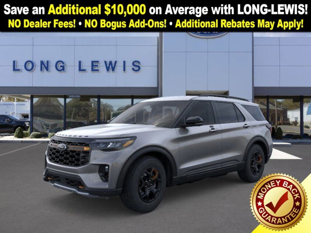Carbonized Gray Metallic 2026 Ford Explorer Tremor FCT 4WD 10-Speed Automatic 2.3L EcoBoost I-4 4WD, 10 Speakers, 3rd row seats: bench, 4-Wheel Disc Brakes, ABS brakes, Air Conditioning, Alloy wheels, AM/FM radio: SiriusXM with 360L, Apple CarPlay/Android Auto, Auto High-beam Headlights, Automatic temperature control, Brake assist, Bumpers: body-color, Compass, Delay-off headlights, Driver door bin, Driver vanity mirror, Dual front impact airbags, Dual front side impact airbags, Electronic Stability Control, Emergency communication system: 911 Assist, Exterior Parking Camera Rear, Four wheel independent suspension, Front anti-roll bar, Front Bucket Seats, Front Center Armrest, Front dual zone A/C, Front fog lights, Front License Plate Bracket, Front reading lights, Fully automatic headlights, Heated door mirrors, Heated front seats, Heated rear seats, Heated steering wheel, Heated/Ventilated Miko Captain's Chairs, Illuminated entry, Knee airbag, Leather steering wheel, Low tire pressure warning, Navigation System, Occupant sensing airbag, Outside temperature display, Overhead airbag, Overhead console, Panic alarm, Passenger door bin, Passenger vanity mirror, Power door mirrors, Power driver seat, Power Liftgate, Power passenger seat, Power steering, Power windows, Radio: B&O Sound System by Bang & Olufsen, Rear air conditioning, Rear anti-roll bar, Rear reading lights, Rear window defroster, Rear window wiper, Remote keyless entry, SecuriCode Keyless Entry Keypad, Security system, Speed control, Speed-sensing steering, Speed-Sensitive Wipers, Split folding rear seat, Spoiler, Sport steering wheel, Steering wheel mounted audio controls, Tachometer, Telescoping steering wheel, Tilt steering wheel, Traction control, Trip computer, Variably intermittent wipers, Ventilated front seats, Wheels: 18" High Gloss Black-Painted Aluminum, 4WD.