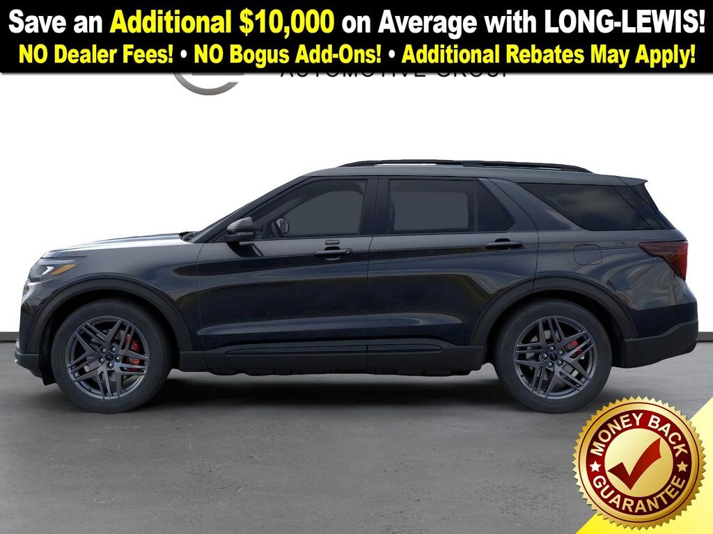 Agate Black Metallic 2026 Ford Explorer ST FCT 4WD 10-Speed Automatic 3.0L EcoBoost V6 4WD, 10 Speakers, 3rd row seats: bench, 4-Wheel Disc Brakes, ABS brakes, Air Conditioning, Alloy wheels, AM/FM radio: SiriusXM with 360L, Apple CarPlay/Android Auto, Auto High-beam Headlights, Auto-dimming door mirrors, Auto-dimming Rear-View mirror, Automatic temperature control, Brake assist, Bumpers: body-color, Compass, Delay-off headlights, Driver door bin, Driver vanity mirror, Dual front impact airbags, Dual front side impact airbags, Electronic Stability Control, Emergency communication system: 911 Assist, Exterior Parking Camera Rear, Four wheel independent suspension, Front anti-roll bar, Front Bucket Seats, Front Center Armrest, Front dual zone A/C, Front fog lights, Front License Plate Bracket, Front reading lights, Fully automatic headlights, Garage door transmitter, Heated door mirrors, Heated front seats, Heated rear seats, Heated steering wheel, Heated/Ventilated Miko Suede Captain's Chairs, Illuminated entry, Knee airbag, Leather steering wheel, Low tire pressure warning, Memory seat, Multicontour Seats with Front Active Motion, Navigation System, Occupant sensing airbag, Outside temperature display, Overhead airbag, Overhead console, Panic alarm, Panoramic Fixed Glass Roof with Power Shade, Passenger door bin, Passenger vanity mirror, Power door mirrors, Power driver seat, Power Liftgate, Power passenger seat, Power steering, Power windows, Radio: B&O Sound System by Bang & Olufsen, Radio: B&O Sound System by Bang and Olufsen, Rain sensing wipers, Rear air conditioning, Rear anti-roll bar, Rear reading lights, Rear window defroster, Rear window wiper, Remote Control Front Windows, Remote keyless entry, SecuriCode Keyless Entry Keypad, Security system, Speed control, Speed-sensing steering, Speed-Sensitive Wipers, Split folding rear seat, Spoiler, Sport steering wheel, Steering wheel mounted audio controls, Sun and Sound Package, Tachometer, Telescoping steering wheel, Tilt steering wheel, Traction control, Trip computer, Turn signal indicator mirrors, Variably intermittent wipers, Ventilated front seats, Wheels: 21" Magnetite-Painted Aluminum, 4WD.