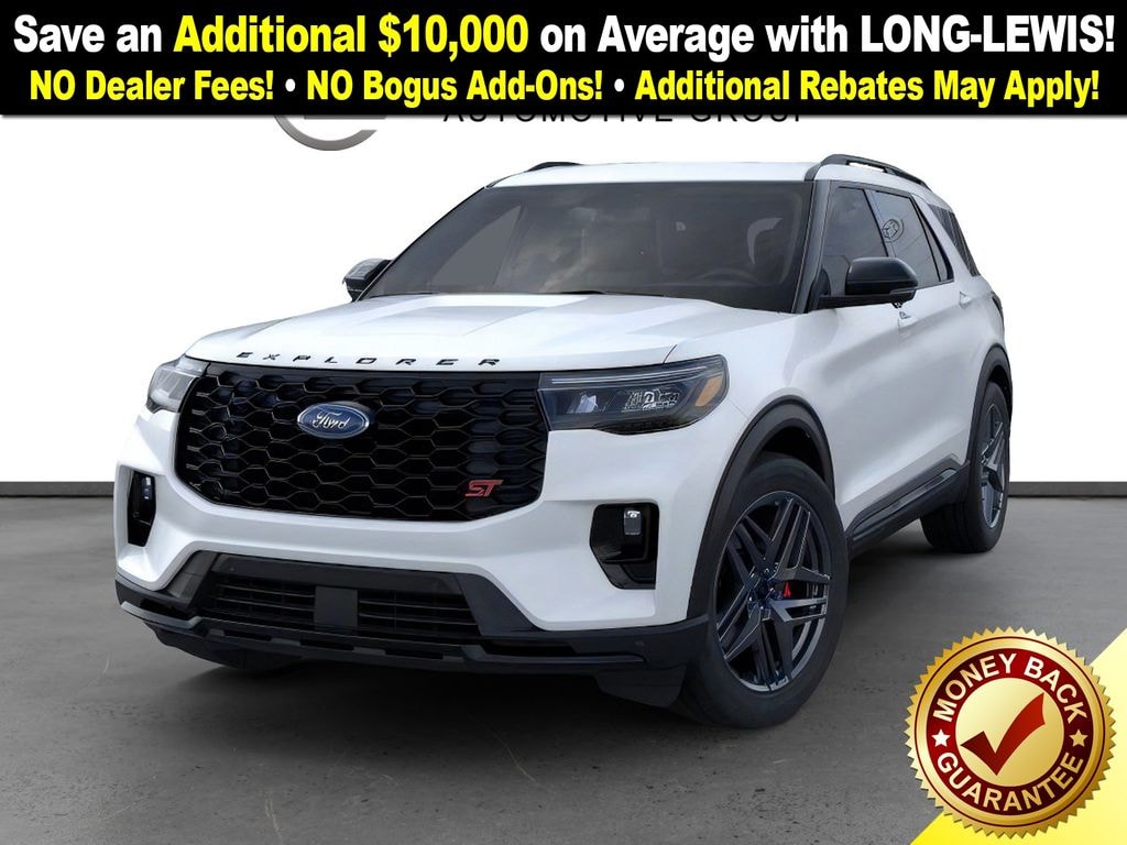 Star White Metallic Tri-Coat 2026 Ford Explorer ST fctp RWD 10-Speed Automatic 3.0L EcoBoost V6 10 Speakers, 3rd row seats: bench, 4-Wheel Disc Brakes, ABS brakes, Air Conditioning, Alloy wheels, AM/FM radio: SiriusXM with 360L, Apple CarPlay/Android Auto, Auto High-beam Headlights, Auto-dimming door mirrors, Auto-dimming Rear-View mirror, Automatic temperature control, Brake assist, Bumpers: body-color, Compass, Delay-off headlights, Driver door bin, Driver vanity mirror, Dual front impact airbags, Dual front side impact airbags, Electronic Stability Control, Emergency communication system: 911 Assist, Exterior Parking Camera Rear, Four wheel independent suspension, Front anti-roll bar, Front Bucket Seats, Front Center Armrest, Front dual zone A/C, Front fog lights, Front License Plate Bracket, Front reading lights, Fully automatic headlights, Garage door transmitter, Heated door mirrors, Heated front seats, Heated rear seats, Heated steering wheel, Illuminated entry, Knee airbag, Leather steering wheel, Low tire pressure warning, Memory seat, Navigation System, Occupant sensing airbag, Outside temperature display, Overhead airbag, Overhead console, Panic alarm, Passenger door bin, Passenger vanity mirror, Power door mirrors, Power driver seat, Power Liftgate, Power passenger seat, Power steering, Power windows, Radio: B&O Sound System by Bang & Olufsen, Rain sensing wipers, Rear air conditioning, Rear anti-roll bar, Rear reading lights, Rear window defroster, Rear window wiper, Remote Control Front Windows, Remote keyless entry, SecuriCode Keyless Entry Keypad, Security system, Speed control, Speed-sensing steering, Speed-Sensitive Wipers, Split folding rear seat, Spoiler, Sport steering wheel, Steering wheel mounted audio controls, Sun and Sound Package, Tachometer, Telescoping steering wheel, Tilt steering wheel, Traction control, Trip computer, Turn signal indicator mirrors, Variably intermittent wipers, Ventilated front seats, Wheels: 21" Magnetite-Painted Aluminum.