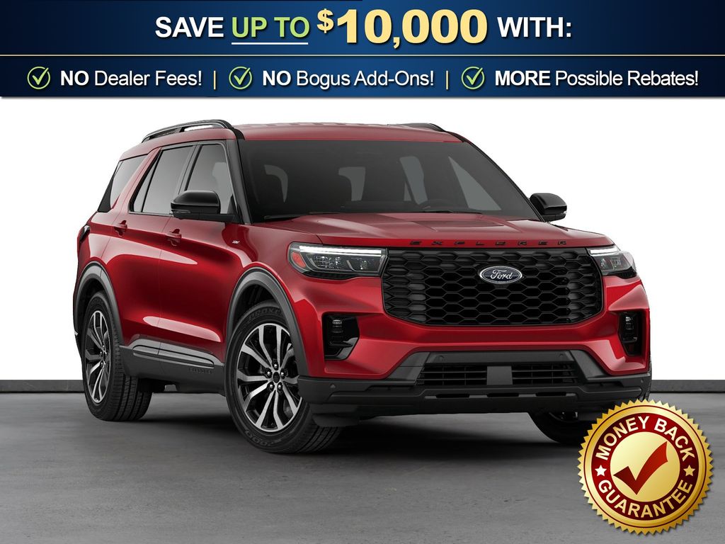 Dealer Discount of $2,231 off MSRP Priced below KBB Fair Purchase Price! Rapid Red Metallic Tinted Clearcoat 2026 Ford Explorer ST-Line NFT RWD 10-Speed Automatic 2.3L EcoBoost I-4 10 Speakers, 3rd row seats: bench, 4-Wheel Disc Brakes, ABS brakes, Air Conditioning, Alloy wheels, AM/FM radio: SiriusXM with 360L, Apple CarPlay/Android Auto, Auto High-beam Headlights, Automatic temperature control, Brake assist, Bumpers: body-color, Compass, Delay-off headlights, Driver door bin, Driver vanity mirror, Dual front impact airbags, Dual front side impact airbags, Electronic Stability Control, Emergency communication system: 911 Assist, Exterior Parking Camera Rear, Four wheel independent suspension, Front anti-roll bar, Front Bucket Seats, Front Center Armrest, Front dual zone A/C, Front fog lights, Front License Plate Bracket, Front reading lights, Fully automatic headlights, Garage door transmitter, Heated door mirrors, Heated front seats, Heated steering wheel, Heated Unique Cloth Captain's Chairs, Illuminated entry, Knee airbag, Leather steering wheel, Low tire pressure warning, Navigation System, Occupant sensing airbag, Outside temperature display, Overhead airbag, Overhead console, Panic alarm, Passenger door bin, Passenger vanity mirror, Power door mirrors, Power driver seat, Power Liftgate, Power passenger seat, Power steering, Power windows, Radio: B&O Sound System by Bang and Olufsen, Rear air conditioning, Rear anti-roll bar, Rear reading lights, Rear window defroster, Rear window wiper, Remote keyless entry, Security system, Speed control, Speed-sensing steering, Speed-Sensitive Wipers, Split folding rear seat, Spoiler, Steering wheel mounted audio controls, Tachometer, Telescoping steering wheel, Tilt steering wheel, Traction control, Trip computer, Variably intermittent wipers, Wheels: 20" Ebony-Painted Machined Aluminum.