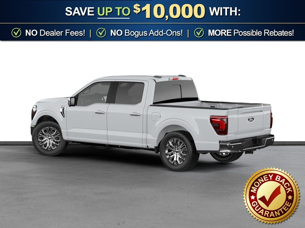 Dealer Discount of $4,055 off MSRP Iconic Silver Metallic 2026 Ford F-150 Lariat NFT 4WD 10-Speed Automatic 5.0L V8 4WD, 4 Pickup Box Tie-Down Plates, 4-Wheel Disc Brakes, 4x4 FX4 Off-Road Bodyside Decal, 8 Speakers, ABS brakes, Air Conditioning, Alloy wheels, AM/FM radio: SiriusXM with 360L, Auto High-beam Headlights, Auto-dimming door mirrors, Auto-dimming Rear-View mirror, Automatic temperature control, Bed Storage Boxes, Bed Utility Package, Brake assist, Bumpers: chrome, Chrome wheels, Compass, Console Worksurface, Delay-off headlights, Driver door bin, Driver vanity mirror, Driver's Side SecuriCode Keyless-Entry Keypad, Dual front impact airbags, Dual front side impact airbags, Electronic Stability Control, Emergency communication system: SYNC 4 911 Assist, Ford Connectivity Package (1-Year Included), Front anti-roll bar, Front Bucket Seats, Front Center Armrest, Front dual zone A/C, Front fog lights, Front License Plate Bracket, Front reading lights, Front wheel independent suspension, Fully automatic headlights, FX4 Off-Road Package, Garage door transmitter, Heated door mirrors, Heated front seats, Heated steering wheel, Hill Descent Control, Illuminated entry, Integrated Trailer Brake Controller, Internet access capable: 5G Modem - Ford Connectivity Package, LED Box Lighting, Low tire pressure warning, Memory seat, Mobile Office Package, Monotube Rear Shocks, Navigation system: Connected Navigation, Occupant sensing airbag, Off-Road Tuned Front Shock Absorbers, Outside temperature display, Overhead airbag, Overhead console, Panic alarm, Partitioned Lockable Rear Storage, Passenger door bin, Passenger vanity mirror, Power door mirrors, Power driver seat, Power passenger seat, Power steering, Power windows, Radio data system, Radio: B&O Sound System by Bang and Olufsen, Rain sensing wipers, Rear reading lights, Rear seat center armrest, Rear step bumper, Rear window defroster, Remote keyless entry, Security system, Speed control, Split folding rear seat, Steering wheel mounted audio controls, SYNC 4 with Enhanced Voice Recognition, Tachometer, Tailgate Step with Work Surface, Telescoping steering wheel, Tilt steering wheel, Tow/Haul Package, Traction control, Tray Style Floor Liner Without Carpet Mats, Trip computer, Turn signal indicator mirrors, Variably intermittent wipers, Ventilated front seats, Wheels: 18" Chrome-Like PVD, Wireless Charging, 4WD. Price includes: $2000 - Retail Customer Cash. Exp. 03/31/2026