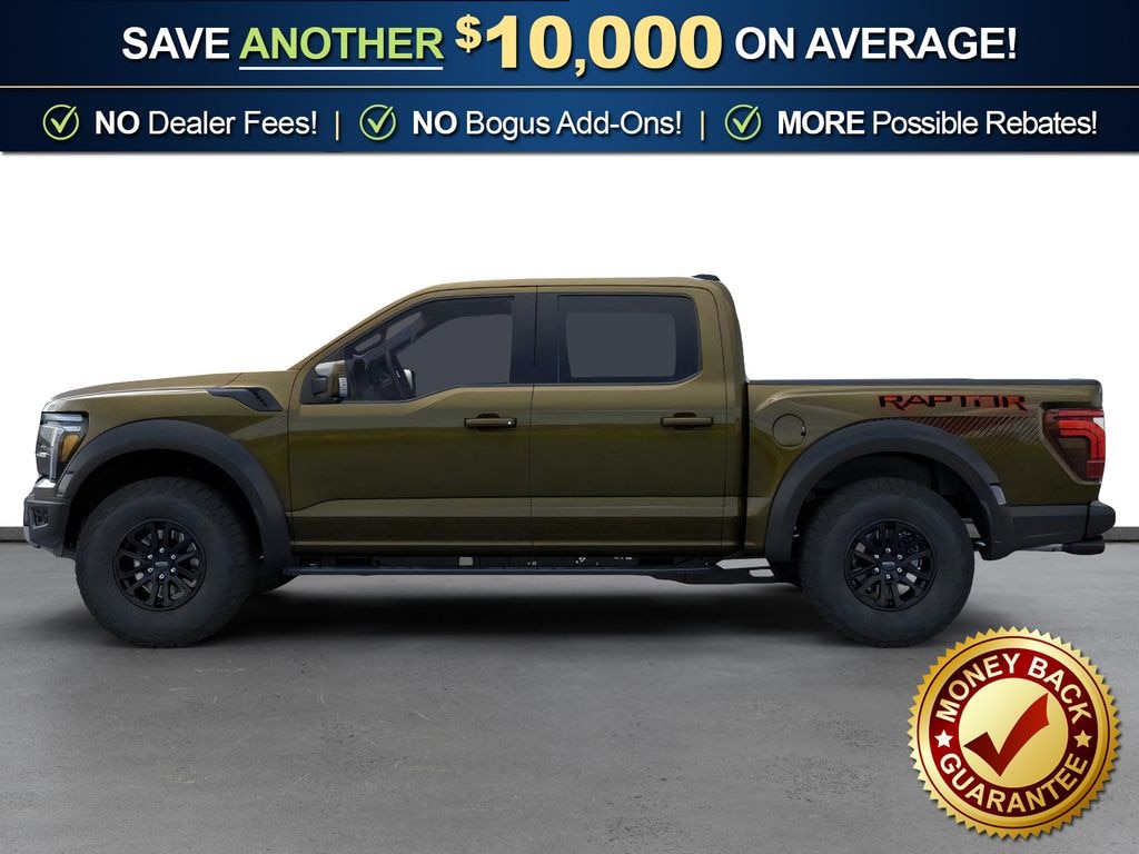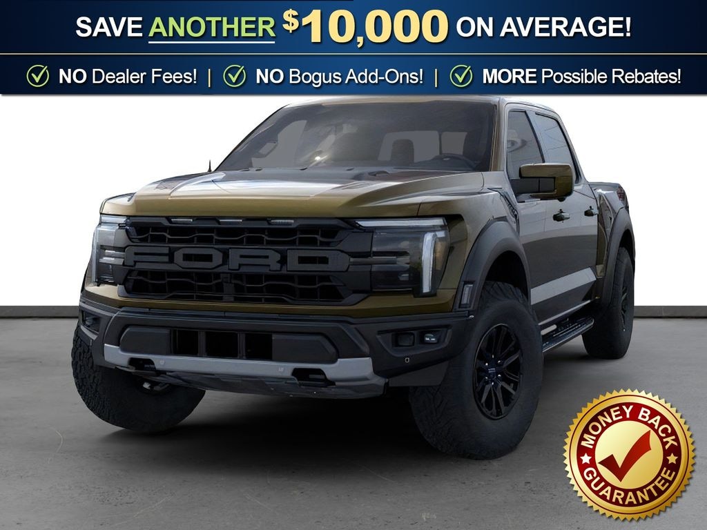Dealer Discount of $2,837 off MSRP Shelter Green 2026 Ford F-150 Raptor NFT 4WD 10-Speed Automatic 3.5L V6 EcoBoost 4WD, 14 Speakers, 17" Cast Aluminum Wheels, 4-Wheel Disc Brakes, ABS brakes, Adjustable pedals, Air Conditioning, Alloy wheels, AM/FM radio: SiriusXM with 360L, Auto High-beam Headlights, Auto tilt-away steering wheel, Auto-dimming door mirrors, Auto-dimming Rear-View mirror, Automatic temperature control, Brake assist, Bumpers: body-color, Compass, Delay-off headlights, Driver door bin, Driver vanity mirror, Driver's Side SecuriCode Keyless-Entry Keypad, Dual front impact airbags, Dual front side impact airbags, Electronic Locking with 4.10 Axle Ratio, Electronic Stability Control, Emergency communication system: SYNC 4 911 Assist, Ford Connectivity Package (1-Year Included), Front anti-roll bar, Front Bucket Seats, Front Center Armrest, Front dual zone A/C, Front fog lights, Front License Plate Bracket, Front reading lights, Front wheel independent suspension, Fully automatic headlights, Garage door transmitter, Heated door mirrors, Heated front seats, Heated rear seats, Heated steering wheel, Illuminated entry, Internet access capable: 5G Modem - Ford Connectivity Package, Lane Departure Warning System, Leather steering wheel, Leather Trimmed Seats, Low tire pressure warning, Memory seat, Navigation system: Connected Navigation, Occupant sensing airbag, Outside temperature display, Overhead airbag, Overhead console, Panic alarm, Passenger door bin, Passenger vanity mirror, Pedal memory, Power door mirrors, Power driver seat, Power passenger seat, Power steering, Power windows, Radio data system, Radio: B&O Unleashed Sound System by Bang & Olufsen, Rain sensing wipers, Rear reading lights, Rear step bumper, Rear window defroster, RECARO with Code Orange Stitching Front Seats, Remote keyless entry, Security system, Speed control, Speed-sensing steering, Split folding rear seat, Steering wheel memory, Steering wheel mounted audio controls, SYNC 4 with Enhanced Voice Recognition, Tachometer, Telescoping steering wheel, Tilt steering wheel, Traction control, Trip computer, Turn signal indicator mirrors, Twin Panel Moonroof, Variably intermittent wipers, Ventilated front seats, 4WD.