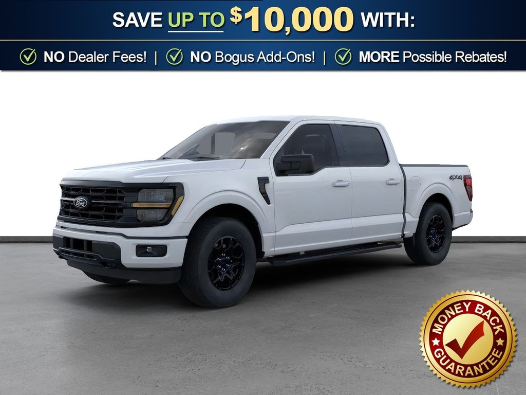 Oxford White 2026 Ford F-150 XLT FCT 4WD 10-Speed Automatic 2.7L V6 EcoBoost 4WD, 18" Painted Aluminum Wheels, 3.55 Axle Ratio, 4-Wheel Disc Brakes, 6 Speakers, 6" Black Running Boards, ABS brakes, Air Conditioning, Alloy wheels, AM/FM radio: SiriusXM with 360L, Auto High-beam Headlights, Black Exterior Badging, Black Grille, Body-Color Door Handles, Body-Color Front and Rear Bumpers, Brake assist, Bumpers: body-color, Compass, Dark Interior Appliques, Delay-off headlights, Driver door bin, Driver vanity mirror, Driver's Side SecuriCode Keyless-Entry Keypad, Dual front impact airbags, Dual front side impact airbags, Electronic Stability Control, Emergency communication system: SYNC 4 911 Assist, Floor Shifter, Ford Connectivity Package (1-Year Included), Front anti-roll bar, Front Center Armrest, Front fog lights, Front License Plate Bracket, Front reading lights, Front wheel independent suspension, Fully automatic headlights, Gray Box Side Decal, GVWR: 6,650 lbs Payload Package, Heated door mirrors, Illuminated entry, Internet access capable: 5G Modem - Ford Connectivity Package, Low tire pressure warning, Occupant sensing airbag, Outside temperature display, Overhead airbag, Overhead console, Panic alarm, Passenger door bin, Passenger vanity mirror, Power door mirrors, Power steering, Power windows, Radio data system, Radio: AM/FM Stereo with SiriusXM 360L, Rear Parking Sensors, Rear reading lights, Rear step bumper, Rear window defroster, Remote keyless entry, Security system, Speed control, Split folding rear seat, Steering wheel mounted audio controls, SYNC 4 with Enhanced Voice Recognition, Tachometer, Telescoping steering wheel, Tilt steering wheel, Traction control, Trip computer, Unique Sport Cloth 40/Console/40 Front-Seats, Variably intermittent wipers, Wheels: 18" Gloss Black, XLT Black Appearance Package, 4WD.