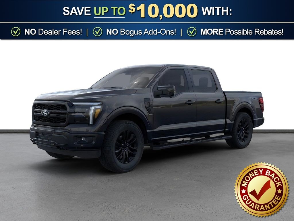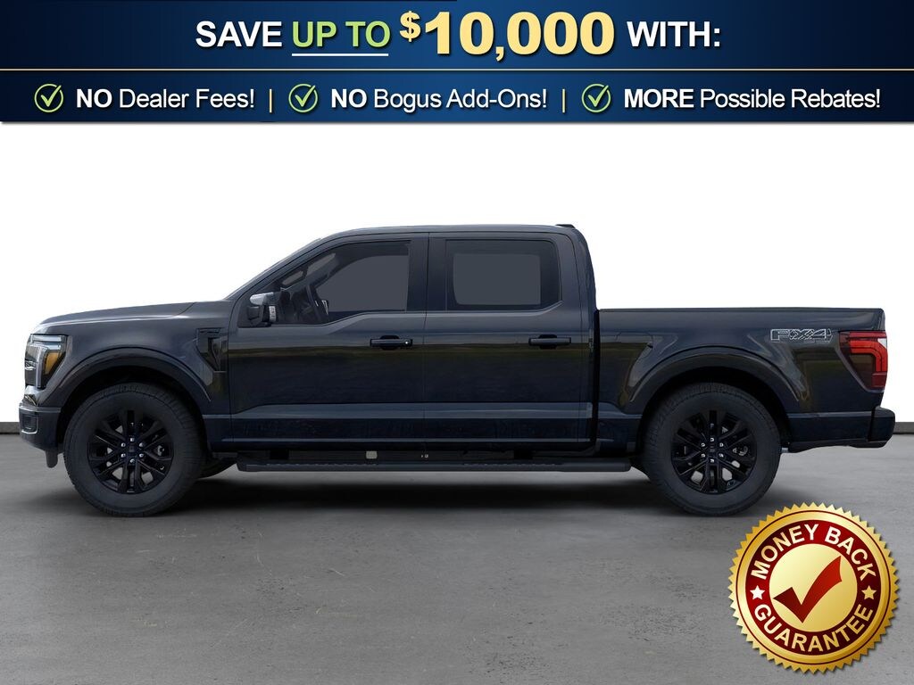 Dealer Discount of $6,294 off MSRP Agate Black Metallic 2026 Ford F-150 Lariat NFT 4WD 10-Speed Automatic 5.0L V8 4WD, 4 Pickup Box Tie-Down Plates, 4-Wheel Disc Brakes, 4x4 FX4 Off-Road Bodyside Decal, 8 Speakers, ABS brakes, ActiveX Trimmed Bucket Seats, Air Conditioning, Alloy wheels, AM/FM radio: SiriusXM with 360L, Auto High-beam Headlights, Auto-dimming door mirrors, Auto-dimming Rear-View mirror, Automatic temperature control, Bed Storage Boxes, Bed Utility Package, Black Exterior Badging, Black Grille, Black Taillamp Bezels, Body-Color Front and Rear Bumpers, Brake assist, Bumpers: chrome, Chrome wheels, Compass, Dark Interior Appliques, Delay-off headlights, Driver door bin, Driver vanity mirror, Driver's Side SecuriCode Keyless-Entry Keypad, Dual front impact airbags, Dual front side impact airbags, Electronic Stability Control, Emergency communication system: SYNC 4 911 Assist, Ford Connectivity Package (1-Year Included), Front anti-roll bar, Front Bucket Seats, Front Center Armrest, Front dual zone A/C, Front fog lights, Front License Plate Bracket, Front reading lights, Front wheel independent suspension, Fully automatic headlights, FX4 Off-Road Package, Garage door transmitter, Gray Box Side Decal, Heated door mirrors, Heated front seats, Heated steering wheel, Hill Descent Control, Illuminated entry, Internet access capable: 5G Modem - Ford Connectivity Package, Lariat Black Appearance Package, LED Box Lighting, Low tire pressure warning, Matte Black Tailgate F-150 Decal, Memory seat, Monotube Rear Shocks, Navigation system: Connected Navigation, Occupant sensing airbag, Off-Road Tuned Front Shock Absorbers, Outside temperature display, Overhead airbag, Overhead console, Panic alarm, Passenger door bin, Passenger vanity mirror, Power door mirrors, Power driver seat, Power passenger seat, Power steering, Power windows, Radio data system, Radio: B&O Sound System by Bang and Olufsen, Rain sensing wipers, Rear reading lights, Rear seat center armrest, Rear step bumper, Rear window defroster, Remote keyless entry, Rock Crawl Mode, Security system, Speed control, Split folding rear seat, Steering wheel mounted audio controls, SYNC 4 with Enhanced Voice Recognition, Tachometer, Tailgate Step with Work Surface, Telescoping steering wheel, Tilt steering wheel, Traction control, Tray Style Floor Liner Without Carpet Mats, Trip computer, Turn signal indicator mirrors, Twin Panel Moonroof, Variably intermittent wipers, Ventilated front seats, Wheels: 18" Chrome-Like PVD, 4WD. Price includes: $2000 - Retail Customer Cash. Exp. 03/31/2026