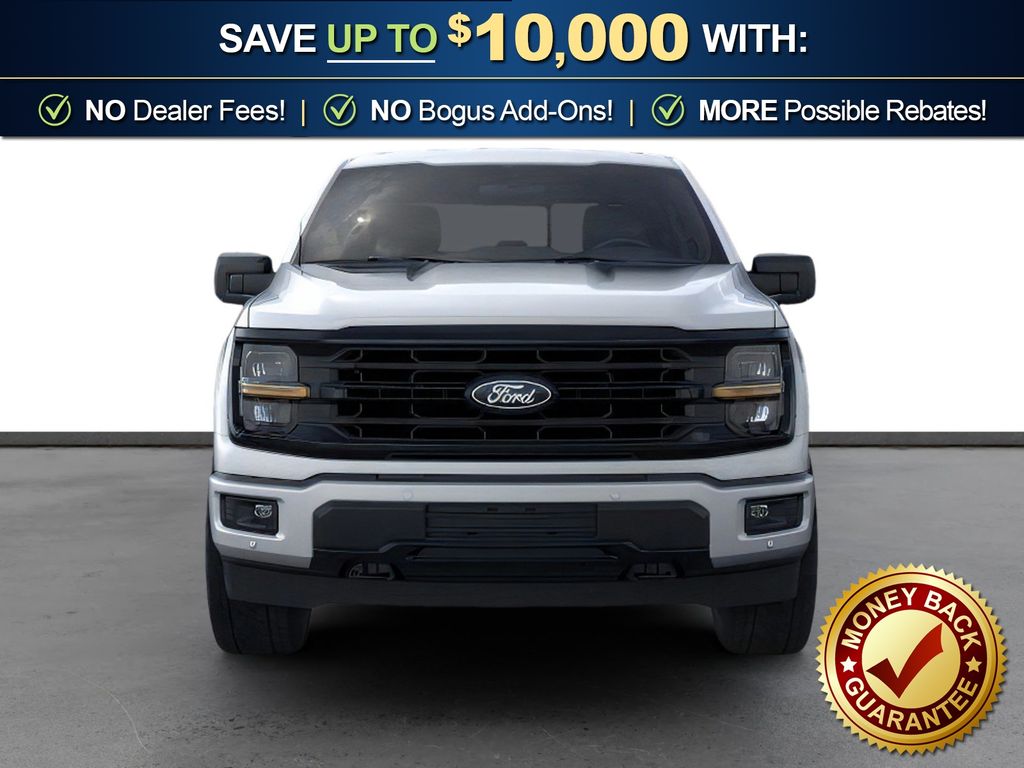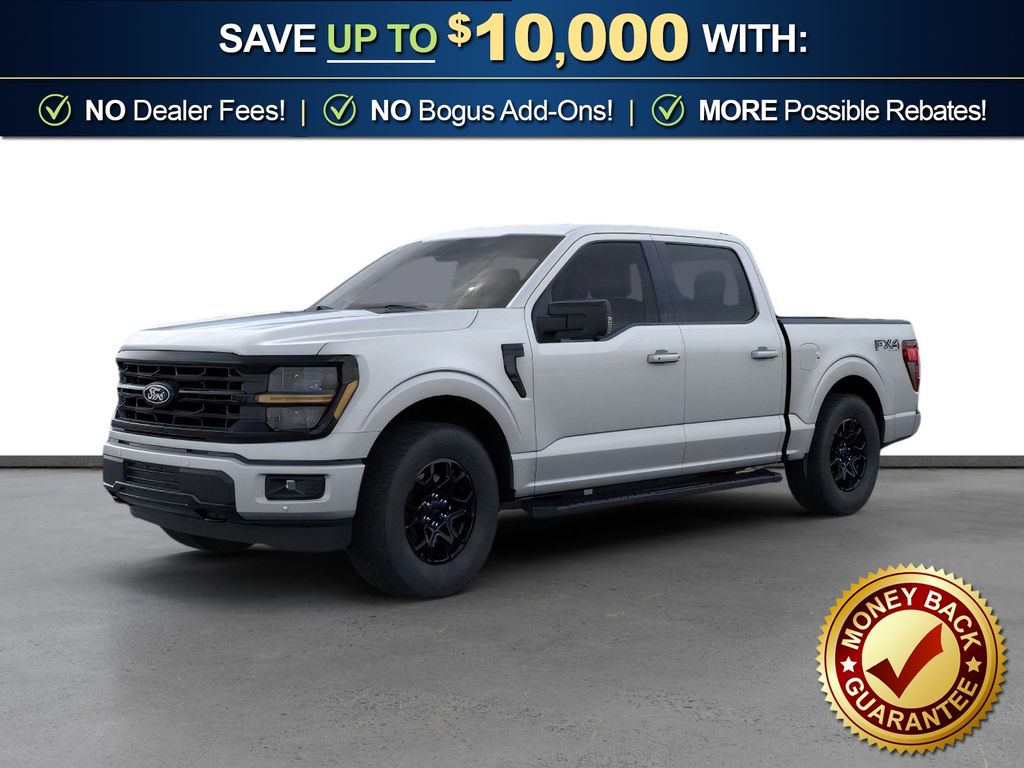 Iconic Silver Metallic 2026 Ford F-150 XLT NFT 4WD 10-Speed Automatic 5.0L V8 4WD, 18" Painted Aluminum Wheels, 4-Wheel Disc Brakes, 6 Speakers, ABS brakes, Air Conditioning, Alloy wheels, AM/FM radio: SiriusXM with 360L, Auto High-beam Headlights, Brake assist, Bumpers: body-color, Compass, Delay-off headlights, Driver door bin, Driver vanity mirror, Dual front impact airbags, Dual front side impact airbags, Electronic Stability Control, Emergency communication system: SYNC 4 911 Assist, Front anti-roll bar, Front Center Armrest, Front fog lights, Front License Plate Bracket, Front reading lights, Front wheel independent suspension, Fully automatic headlights, FX4 Off-Road Package, Heated door mirrors, Illuminated entry, Internet access capable: 5G Modem - Ford Connectivity Package, Low tire pressure warning, Occupant sensing airbag, Outside temperature display, Overhead airbag, Overhead console, Panic alarm, Passenger door bin, Passenger vanity mirror, Power door mirrors, Power steering, Power windows, Radio data system, Radio: AM/FM Stereo with SiriusXM 360L, Rear reading lights, Rear step bumper, Rear window defroster, Remote keyless entry, Security system, Speed control, Split folding rear seat, Steering wheel mounted audio controls, SYNC 4 with Enhanced Voice Recognition, Tachometer, Telescoping steering wheel, Tilt steering wheel, Tow/Haul Package, Traction control, Trip computer, Unique Sport Cloth 40/Console/40 Front-Seats, Variably intermittent wipers, XLT Black Appearance Package, 4WD.