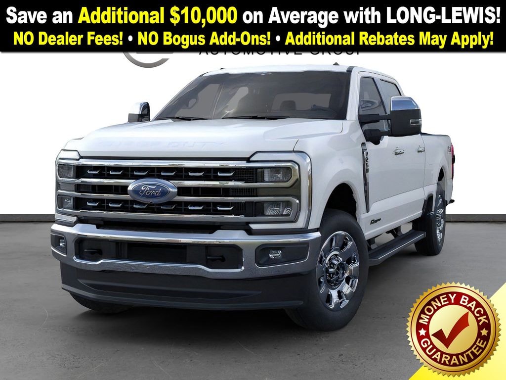 Star White Metallic Tri-Coat 2026 Ford F-250SD Lariat NCT 4WD 10-Speed Automatic Power Stroke 6.7L V8 DI 32V OHV Turbodiesel 4WD, 4-Wheel Disc Brakes, 410 Amp Dual Alternators, 6" Angular Bright Anodized Step Bars, 8 Speakers, ABS brakes, Adjustable pedals, Air Conditioning, Alloy wheels, AM/FM radio: SiriusXM with 360L, Auto High-beam Headlights, Auto-dimming Rear-View mirror, Automatic temperature control, BLIS w/Cross-Traffic Alert, Brake assist, Bumpers: chrome, Chrome Door Handles, Chrome Exhaust Tip, Chrome Package, Compass, Delay-off headlights, Driver door bin, Driver vanity mirror, Dual AGM 68 AH Battery, Dual front impact airbags, Dual front side impact airbags, Electronic Stability Control, Emergency communication system: SYNC 4 911 Assist, Engine Block Heater, F-250 >10K GVWR Package, Flow-Through Console, Ford Connectivity Package (1-Year Included), Front ActiveX Trimmed 40/Console/40 Seats, Front anti-roll bar, Front Bucket Seats, Front Center Armrest, Front dual zone A/C, Front fog lights, Front reading lights, Fully automatic headlights, FX4 Off-Road Package, Garage door transmitter, Heated door mirrors, Heated front seats, Heated rear seats, Heated steering wheel, Hill Descent Control, Illuminated entry, Internet access capable: 5G Modem - Ford Connectivity Package, LED Roof Clearance Lights, Low tire pressure warning, Memory seat, Navigation system: Connected Navigation, Off-Road Specifically Tuned Shock Absorbers, Outside temperature display, Overhead airbag, Overhead console, Panic alarm, Passenger door bin, Passenger vanity mirror, Pedal memory, Power door mirrors, Power driver seat, Power passenger seat, Power steering, Power windows, Power-Sliding Rear-Window w/Defrost, Privacy Glass, Radio: B&O Sound System by Bang & Olufsen, Rain sensing wipers, Rapid-Heat Supplemental Cab Heater, Rear Parking Sensors, Rear reading lights, Rear seat center armrest, Rear step bumper, Rear window defroster, Remote keyless entry, Security system, SiriusXM w/360L, Speed control, Split folding rear seat, Steering wheel mounted audio controls, SYNC 4 w/Enhanced Voice Recognition, Tachometer, Tailgate Step & Handle, Telescoping steering wheel, Tilt steering wheel, Traction control, Trip computer, Turn signal indicator mirrors, Unique Chrome Mirror Caps, Unique FX4 Off-Road Box Decal, Upfitter Switches (6), Variably intermittent wipers, Ventilated front seats, Wheels: 18" Bright Machined & Carbonized Gray Alum, Wheels: 20" Chrome PVD Aluminum, 4WD.