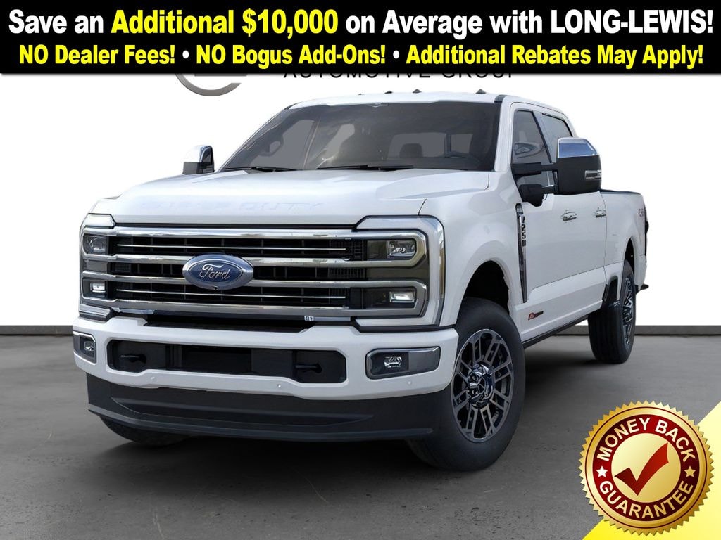 Star White Metallic Tri-Coat 2026 Ford F-250SD Platinum NFT 4WD 10-Speed Automatic 6.7L High Output Power Stroke V8 Diesel 4WD, 4-Wheel Disc Brakes, 410 Amp Dual Alternators, 5th Wheel/Gooseneck Hitch Prep Package, ABS brakes, Adjustable pedals, Air Conditioning, Alloy wheels, AM/FM radio: SiriusXM with 360L, Auto High-beam Headlights, Auto-dimming Rear-View mirror, Automatic temperature control, Brake assist, Compass, Delay-off headlights, Driver door bin, Driver vanity mirror, Dual front impact airbags, Dual front side impact airbags, Electronic Stability Control, Emergency communication system: SYNC 4 911 Assist, Engine Block Heater, F-250 >10K GVWR Package, Flow-Through Console, Ford Connectivity Package (1-Year Included), Front anti-roll bar, Front Bucket Seats, Front Center Armrest, Front dual zone A/C, Front fog lights, Front reading lights, Fully automatic headlights, FX4 Off-Road Package, Garage door transmitter, Heated door mirrors, Heated front seats, Heated rear seats, Heated steering wheel, High Capacity 11.6" Axle Upgrade Package, Hill Descent Control, Illuminated entry, Internet access capable: 5G Modem - Ford Connectivity Package, LED Roof Clearance Lights, Low tire pressure warning, Memory seat, Navigation system: Connected Navigation, Off-Road Specifically Tuned Shock Absorbers, Outside temperature display, Overhead airbag, Overhead console, Panic alarm, Passenger door bin, Passenger vanity mirror, Pedal memory, Power door mirrors, Power driver seat, Power passenger seat, Power steering, Power windows, Radio: B&O Unleashed Sound System by Bang & Olufsen, Rain sensing wipers, Rapid-Heat Supplemental Cab Heater, Rear reading lights, Rear seat center armrest, Rear step bumper, Rear window defroster, Remote keyless entry, Security system, SiriusXM w/360L, Speed control, Split folding rear seat, Steering wheel mounted audio controls, SYNC 4 w/Enhanced Voice Recognition, Tachometer, Telescoping steering wheel, Tilt steering wheel, Traction control, Trip computer, Turn signal indicator mirrors, Unique FX4 Off-Road Box Decal, Variably intermittent wipers, Ventilated front seats, 4WD.
