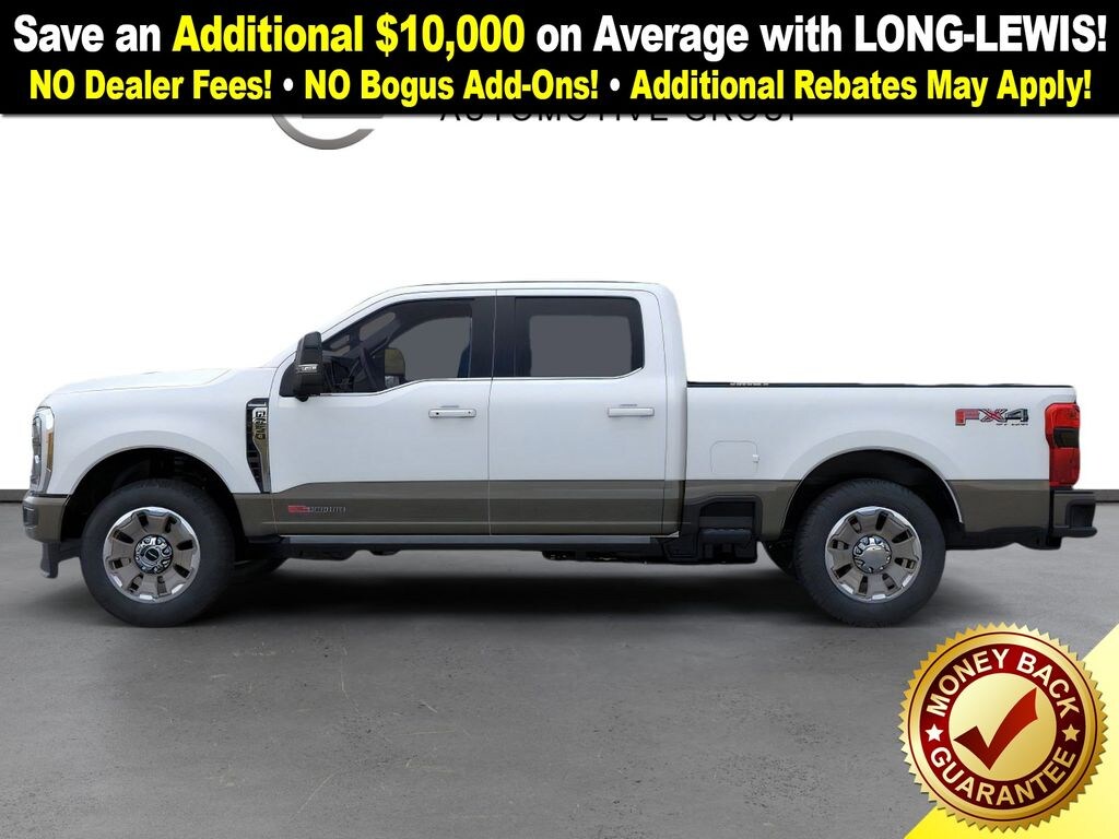 Dealer Discount of $6,493 off MSRP Star White Metallic Tri-Coat 2026 Ford F-250SD King Ranch NFT 4WD 10-Speed Automatic 6.7L High Output Power Stroke V8 Diesel 4WD, 14 Speakers, 4-Wheel Disc Brakes, 410 Amp Dual Alternators, 5th Wheel/Gooseneck Hitch Prep Package, ABS brakes, Adjustable pedals, Air Conditioning, Alloy wheels, AM/FM radio: SiriusXM with 360L, Auto High-beam Headlights, Auto tilt-away steering wheel, Auto-dimming Rear-View mirror, Automatic temperature control, Brake assist, Compass, Delay-off headlights, Driver door bin, Driver vanity mirror, Dual front impact airbags, Dual front side impact airbags, Electronic Stability Control, Emergency communication system: SYNC 4 911 Assist, Engine Block Heater, F-250 >10K GVWR Package, Flow-Through Console, Ford Connectivity Package (1-Year Included), Front anti-roll bar, Front Bucket Seats, Front Center Armrest, Front dual zone A/C, Front fog lights, Front License Plate Bracket, Front reading lights, Fully automatic headlights, FX4 Off-Road Package, Garage door transmitter, Heads-Up Display, Heated door mirrors, Heated front seats, Heated rear seats, Heated steering wheel, High Capacity 11.6" Axle Upgrade Package, Hill Descent Control, Illuminated entry, Internet access capable: 5G Modem - Ford Connectivity Package, Leather steering wheel, LED Roof Clearance Lights, Low tire pressure warning, Max Recline Seats, Memory seat, Navigation system: Connected Navigation, Off-Road Specifically Tuned Shock Absorbers, Outside temperature display, Overhead airbag, Overhead console, Panic alarm, Passenger door bin, Passenger vanity mirror, Pedal memory, Power door mirrors, Power driver seat, Power passenger seat, Power steering, Power windows, Pro Power Onboard - 2kW, Radio: B&O Unleashed Sound System by Bang & Olufsen, Rain sensing wipers, Rapid-Heat Supplemental Cab Heater, Rear reading lights, Rear seat center armrest, Rear step bumper, Rear window defroster, Remote keyless entry, Security system, SiriusXM w/360L, Speed control, Split folding rear seat, Steering wheel memory, Steering wheel mounted A/C controls, Steering wheel mounted audio controls, SYNC 4 w/Enhanced Voice Recognition, Tachometer, Telescoping steering wheel, Tilt steering wheel, Traction control, Trip computer, Turn signal indicator mirrors, Twin Panel Power Moonroof, Unique FX4 Off-Road Box Decal, Unique King Ranch Leather 40/Console/40 Seats, Upfitter Switches (6), Variably intermittent wipers, Ventilated front seats, Wheels: 20" Bright Machined Aluminum, 4WD.