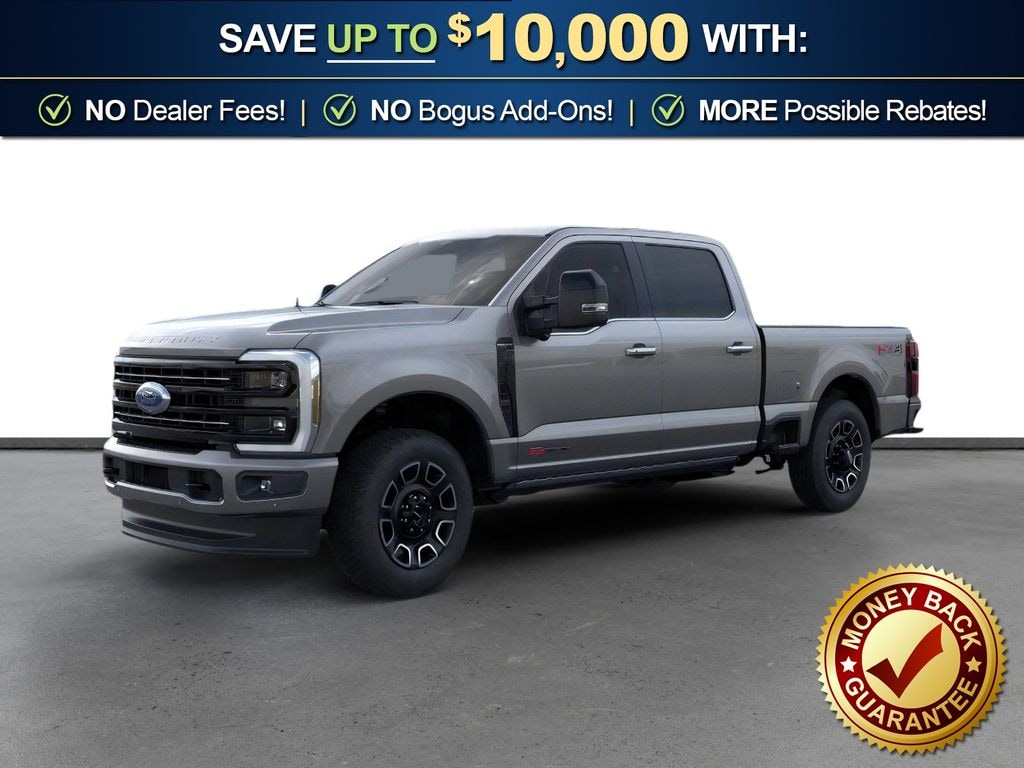 Dealer Discount of $6,514 off MSRP Carbonized Gray Metallic 2026 Ford F-350SD Platinum NFT 4WD 10-Speed Automatic 6.7L High Output Power Stroke V8 Diesel 4WD, 4-Wheel Disc Brakes, 410 Amp Dual Alternators, 5th Wheel/Gooseneck Hitch Prep Package, ABS brakes, Adjustable pedals, Air Conditioning, Alloy wheels, AM/FM radio: SiriusXM with 360L, Auto High-beam Headlights, Auto-dimming Rear-View mirror, Automatic temperature control, Brake assist, Compass, Delay-off headlights, Driver door bin, Driver vanity mirror, Dual front impact airbags, Dual front side impact airbags, Electronic Stability Control, Emergency communication system: SYNC 4 911 Assist, Engine Block Heater, Flow-Through Console, Ford Connectivity Package (1-Year Included), Front anti-roll bar, Front Bucket Seats, Front Center Armrest, Front dual zone A/C, Front fog lights, Front License Plate Bracket, Front reading lights, Fully automatic headlights, FX4 Off-Road Package, Garage door transmitter, Heated door mirrors, Heated front seats, Heated rear seats, Heated steering wheel, Hill Descent Control, Illuminated entry, Internet access capable: 5G Modem - Ford Connectivity Package, Low tire pressure warning, Max Recline Seats, Memory seat, Navigation system: Connected Navigation, Off-Road Specifically Tuned Shock Absorbers, Outside temperature display, Overhead airbag, Overhead console, Panic alarm, Passenger door bin, Passenger vanity mirror, Pedal memory, Power door mirrors, Power driver seat, Power passenger seat, Power steering, Power windows, Pro Power Onboard - 2kW, Radio: B&O Unleashed Sound System by Bang & Olufsen, Rain sensing wipers, Rapid-Heat Supplemental Cab Heater, Rear reading lights, Rear seat center armrest, Rear step bumper, Rear window defroster, Remote keyless entry, Security system, SiriusXM with 360L, Speed control, Split folding rear seat, Steering wheel mounted audio controls, SYNC 4 with Enhanced Voice Recognition, Tachometer, Telescoping steering wheel, Tilt steering wheel, Traction control, Trip computer, Turn signal indicator mirrors, Twin Panel Power Moonroof, Unique FX4 Off-Road Box Decal, Upfitter Switches (6), Variably intermittent wipers, Ventilated front seats, 4WD.