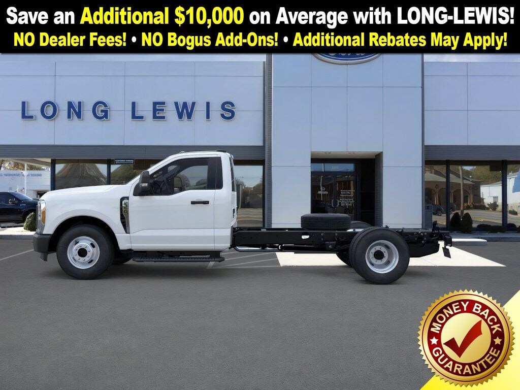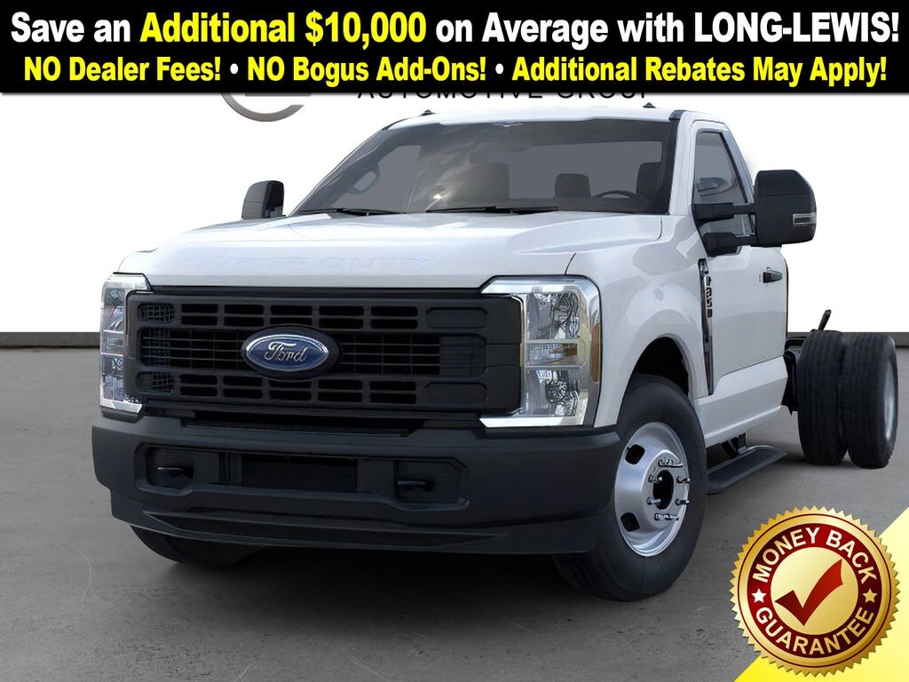 Oxford White 2026 Ford F-350SD XL DRW RWD 10-Speed Automatic 7.3L V8 PFI OHV 16V Federal 335hp 17" Argent Painted Steel Wheels, 190 Amp Alternator, 4 Speakers, 4-Ton Hydraulic Jack, 4-Wheel Disc Brakes, ABS brakes, Air Conditioning, AM/FM radio, AM/FM Stereo w/MP3 Player, Brake assist, Center High-Mounted Stop Lamp (CHMSL), Compass, Delay-off headlights, Dual front impact airbags, Dual front side impact airbags, Dual rear wheels, Emergency communication system: SYNC 4 911 Assist, Ford Connectivity Package (1-Year Included), Front anti-roll bar, Front Center Armrest w/Storage, Front reading lights, Front wheel independent suspension, Fully automatic headlights, GVWR: 14,000 lb Payload Package, HD Vinyl 40/20/40 Split Bench Seat, Heated door mirrors, Heavy-Service Front Suspension Package, Illuminated entry, Internet access capable: 5G Modem - Ford Connectivity Package, Low tire pressure warning, Outside temperature display, Overhead airbag, Overhead console, Panic alarm, Passenger cancellable airbag, Passenger vanity mirror, Platform Running Boards, Power door mirrors, Power steering, Power windows, Rear anti-roll bar, Rear View Camera & Prep Kit, Remote keyless entry, Security system, Speed control, Steering wheel mounted audio controls, SYNC 4 Communication & Entertainment System, Tachometer, Telescoping steering wheel, Tilt steering wheel, Traction control, Trailer Brake Controller, Trip computer, Turn signal indicator mirrors, Variably intermittent wipers.
