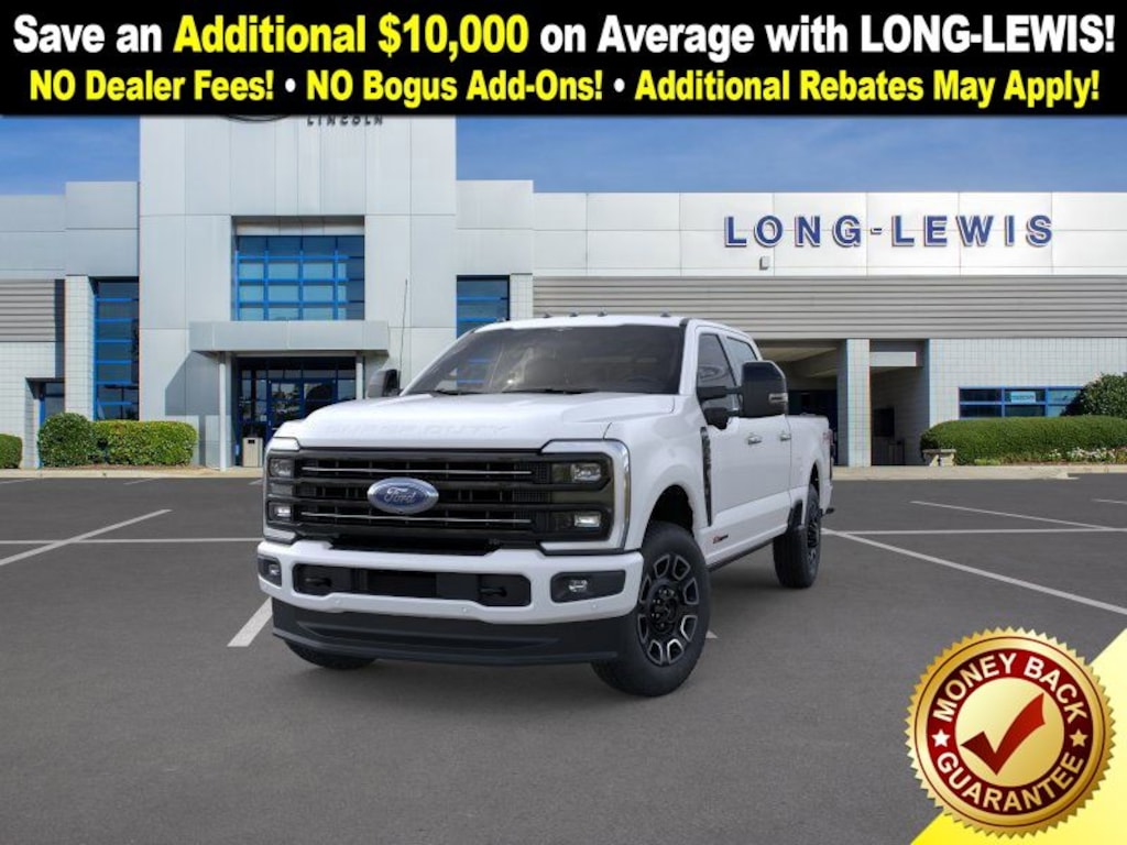 Dealer Discount of $6,625 off MSRP Star White Metallic Tri-Coat 2026 Ford F-350SD Platinum FCT 4WD 10-Speed Automatic 6.7L High Output Power Stroke V8 Diesel 4WD, 4-Wheel Disc Brakes, 410 Amp Dual Alternators, 5th Wheel/Gooseneck Hitch Prep Package, ABS brakes, Adjustable pedals, Air Conditioning, Alloy wheels, AM/FM radio: SiriusXM with 360L, Auto High-beam Headlights, Auto-dimming Rear-View mirror, Automatic temperature control, Brake assist, Compass, Delay-off headlights, Driver door bin, Driver vanity mirror, Dual front impact airbags, Dual front side impact airbags, Electronic Stability Control, Emergency communication system: SYNC 4 911 Assist, Engine Block Heater, Flow-Through Console, Ford Connectivity Package (1-Year Included), Front anti-roll bar, Front Bucket Seats, Front Center Armrest, Front dual zone A/C, Front fog lights, Front License Plate Bracket, Front reading lights, Fully automatic headlights, FX4 Off-Road Package, Garage door transmitter, Heated door mirrors, Heated front seats, Heated rear seats, Heated steering wheel, Hill Descent Control, Illuminated entry, Internet access capable: 5G Modem - Ford Connectivity Package, LED Roof Clearance Lights, Low tire pressure warning, Max Recline Seats, Memory seat, Navigation system: Connected Navigation, Off-Road Specifically Tuned Shock Absorbers, Outside temperature display, Overhead airbag, Overhead console, Panic alarm, Passenger door bin, Passenger vanity mirror, Pedal memory, Power door mirrors, Power driver seat, Power passenger seat, Power steering, Power windows, Pro Power Onboard - 2kW, Radio: B&O Unleashed Sound System by Bang & Olufsen, Rain sensing wipers, Rapid-Heat Supplemental Cab Heater, Rear reading lights, Rear seat center armrest, Rear step bumper, Rear window defroster, Remote keyless entry, Security system, SiriusXM w/360L, Speed control, Split folding rear seat, Steering wheel mounted audio controls, SYNC 4 w/Enhanced Voice Recognition, Tachometer, Telescoping steering wheel, Tilt steering wheel, Traction control, Trip computer, Turn signal indicator mirrors, Twin Panel Power Moonroof, Unique FX4 Off-Road Box Decal, Upfitter Switches (6), Variably intermittent wipers, Ventilated front seats, 4WD.