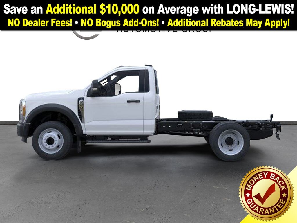 Oxford White 2026 Ford F-550SD XL DRW RWD 10-Speed Automatic 7.3L V8 PFI OHV 16V Federal 335hp 190 Amp Alternator, 4 Speakers, 4-Wheel Disc Brakes, 410 Amp Dual Alternators, 6-Ton Hydraulic Jack, ABS brakes, Air Conditioning, AM/FM radio, Brake assist, Compass, Delay-off headlights, Dual 68 AH/65 AGM Battery, Dual front impact airbags, Dual front side impact airbags, Dual rear wheels, Emergency communication system: SYNC 4 911 Assist, Ford Connectivity Package (1-Year Included), Front anti-roll bar, Front Center Armrest w/Storage, Front reading lights, Fully automatic headlights, GVWR: 18,000 lbs Payload Package, HD Vinyl 40/20/40 Split Bench Seat, Heated door mirrors, Illuminated entry, Internet access capable: 5G Modem - Ford Connectivity Package, Low tire pressure warning, Outside temperature display, Overhead airbag, Overhead console, Panic alarm, Passenger cancellable airbag, Passenger vanity mirror, Platform Running Boards, Power door mirrors, Power steering, Power windows, Pro Power Onboard - 400W Outlet, Rear anti-roll bar, Remote keyless entry, Security system, Speed control, Steering wheel mounted audio controls, Tachometer, Telescoping steering wheel, Tilt steering wheel, Traction control, Trailer Brake Controller, Trip computer, Turn signal indicator mirrors, Variably intermittent wipers, Wheels: 19.5" x 6" Argent Painted Steel.
