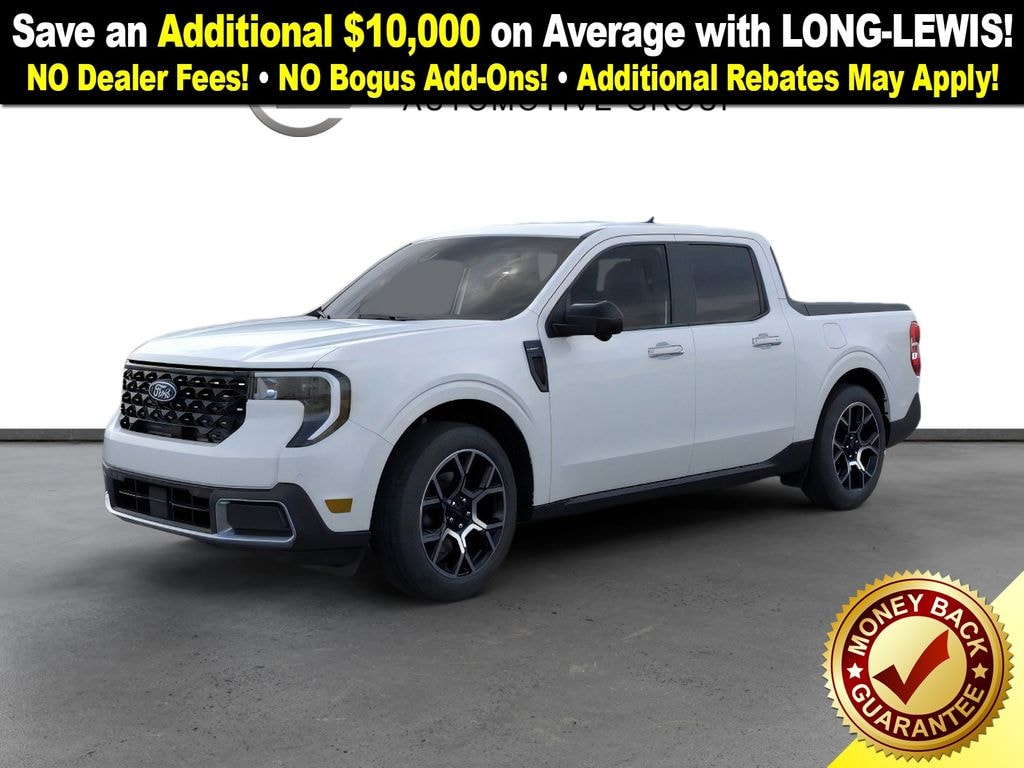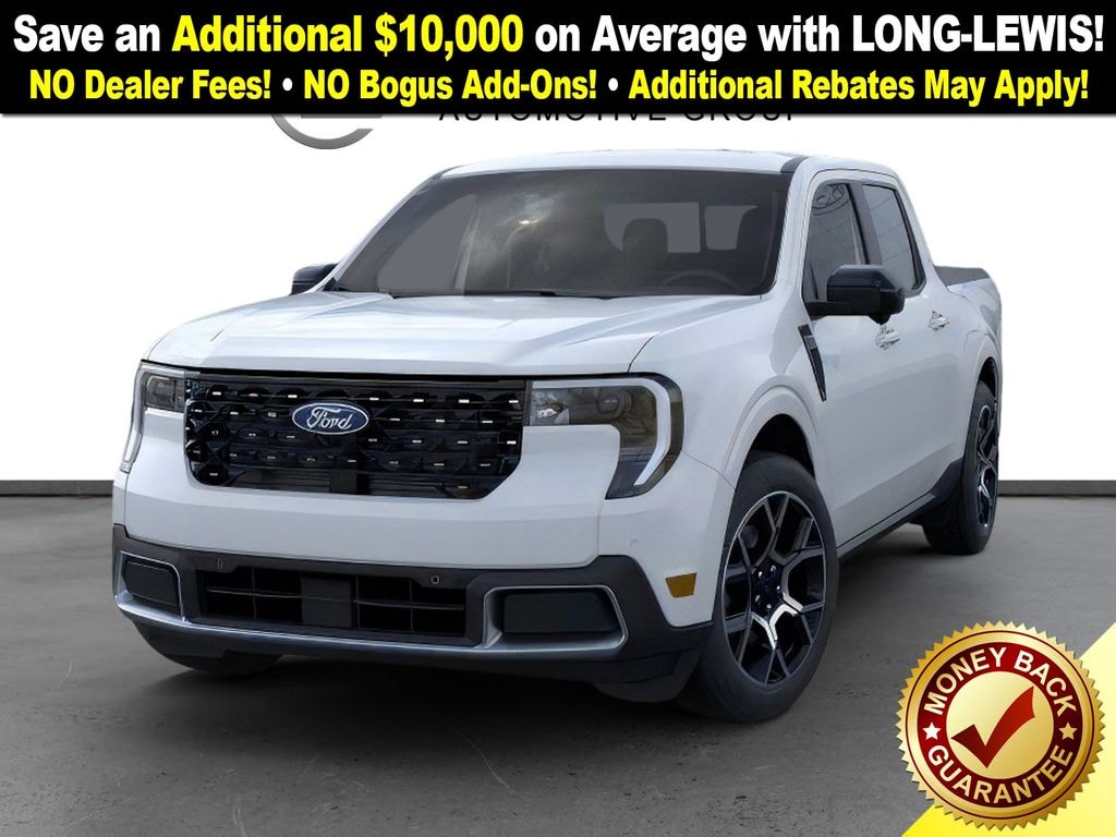 Space White Metallic 2026 Ford Maverick Lariat FCT AWD 8-Speed Automatic EcoBoost 2.0L I4 GTDi DOHC Turbocharged VCT 2.91 Axle Ratio, 4-Wheel Disc Brakes, 4K Tow Package, 8 Speakers, ABS brakes, ActiveX Trimmed Heated Front Bucket Seats, Air Conditioning, Alloy wheels, AM/FM radio: SiriusXM with 360L, Apple CarPlay/Android Auto, Auto High-beam Headlights, Automatic temperature control, Brake assist, Bumpers: body-color, Compass, Delay-off headlights, Driver door bin, Driver vanity mirror, Dual front impact airbags, Dual front side impact airbags, Electronic Stability Control, Emergency communication system: SYNC 4 911 Assist, Equipment Group 502A, Exterior Parking Camera Rear, Ford Connectivity Package (1-Year Included), Four wheel independent suspension, Front anti-roll bar, Front Bucket Seats, Front Center Armrest, Front dual zone A/C, Front reading lights, Fully automatic headlights, Heated door mirrors, Heated front seats, Heated steering wheel, Illuminated entry, Internet access capable: 5G Modem - Ford Connectivity Package, Knee airbag, Low tire pressure warning, Navigation system: Connected Navigation, Occupant sensing airbag, Outside temperature display, Overhead airbag, Overhead console, Panic alarm, Passenger door bin, Passenger vanity mirror, Power door mirrors, Power driver seat, Power steering, Power windows, Power-Sliding Rear Window, Radio data system, Radio: B&O Sound System by Bang and Olufsen, Rear anti-roll bar, Rear seat center armrest, Rear step bumper, Remote keyless entry, Security system, SiriusXM with 360L, Speed control, Speed-sensing steering, Steering wheel mounted audio controls, SYNC 4 with Enhanced Voice Recognition, Telescoping steering wheel, Tilt steering wheel, Traction control, Trailer Brake Controller, Trailer Hitch (class III) 2" Receiver, Trip computer, Upgraded Cooling Fan, Wheels: 19" Machined Aluminum Painted.
