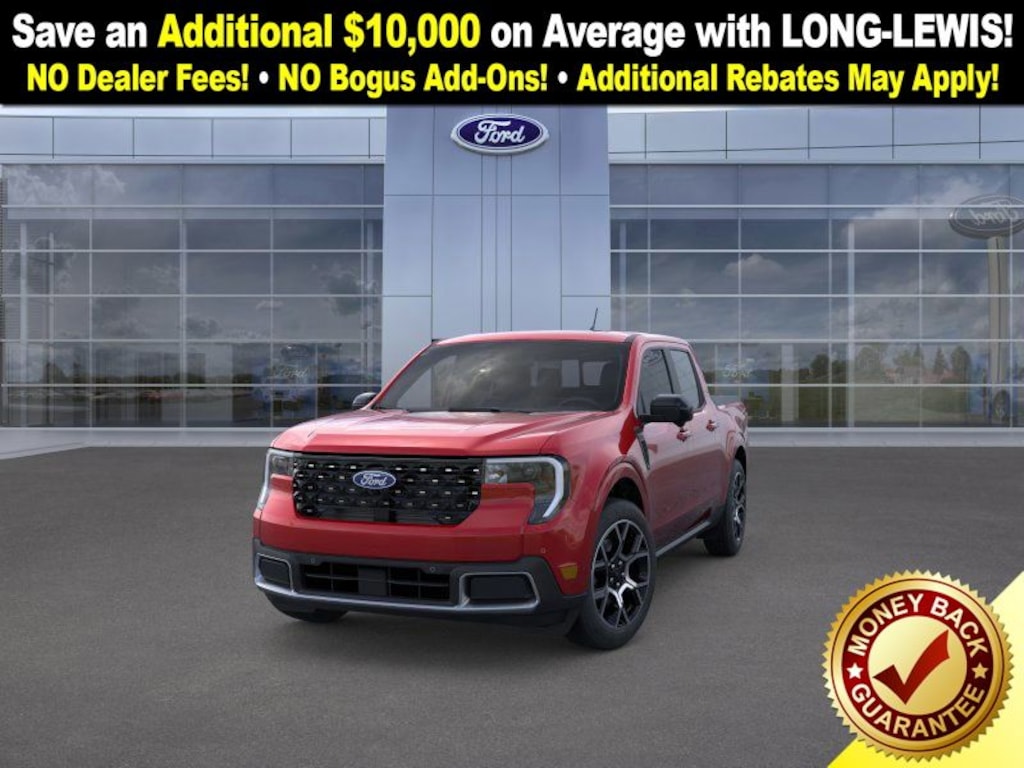 Ruby Red Metallic 2026 Ford Maverick Lariat AWD 8-Speed Automatic EcoBoost 2.0L I4 GTDi DOHC Turbocharged VCT 2.91 Axle Ratio, 4-Wheel Disc Brakes, 8 Speakers, ABS brakes, ActiveX Trimmed Heated Front Bucket Seats, Air Conditioning, Alloy wheels, AM/FM radio: SiriusXM with 360L, Apple CarPlay/Android Auto, Auto High-beam Headlights, Automatic temperature control, Brake assist, Bumpers: body-color, Compass, Delay-off headlights, Driver door bin, Driver vanity mirror, Dual front impact airbags, Dual front side impact airbags, Electronic Stability Control, Emergency communication system: SYNC 4 911 Assist, Exterior Parking Camera Rear, Ford Connectivity Package (1-Year Included), Four wheel independent suspension, Front anti-roll bar, Front Bucket Seats, Front Center Armrest, Front dual zone A/C, Front reading lights, Fully automatic headlights, Heated door mirrors, Heated front seats, Heated steering wheel, Illuminated entry, Internet access capable: 5G Modem - Ford Connectivity Package, Knee airbag, Low tire pressure warning, Navigation system: Connected Navigation, Occupant sensing airbag, Outside temperature display, Overhead airbag, Overhead console, Panic alarm, Passenger door bin, Passenger vanity mirror, Power door mirrors, Power driver seat, Power steering, Power windows, Radio data system, Radio: B&O Sound System by Bang and Olufsen, Rear anti-roll bar, Rear seat center armrest, Rear step bumper, Remote keyless entry, Security system, SiriusXM with 360L, Speed control, Speed-sensing steering, Steering wheel mounted audio controls, SYNC 4 with Enhanced Voice Recognition, Telescoping steering wheel, Tilt steering wheel, Traction control, Trip computer, Wheels: 19" Machined Aluminum Painted.