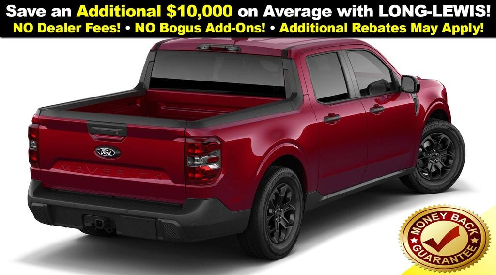 Dealer Discount of $1,105 off MSRP Ruby Red Metallic Tinted Clearcoat 2026 Ford Maverick XLT NFT FWD CVT 2.5L I-4 Hybrid 2.5L I-4 Hybrid, 2.91 Axle Ratio, 4-Wheel Disc Brakes, 6 Speakers, ABS brakes, Air Conditioning, Alloy wheels, AM/FM radio: SiriusXM with 360L, Apple CarPlay/Android Auto, Auto High Beams, Auto High-beam Headlights, Automatic temperature control, BLIS with Cross-Traffic Alert and Trailer Coverage, Brake assist, Bumpers: body-color, Compass, Delay-off headlights, Driver door bin, Driver vanity mirror, Dual front impact airbags, Dual front side impact airbags, Electronic Stability Control, Emergency communication system: SYNC 4 911 Assist, Exit Warning, Exterior Parking Camera Rear, Ford Co-Pilot360, Ford Connectivity Package (1-Year Included), Front anti-roll bar, Front Bucket Seats, Front Center Armrest, Front reading lights, Front wheel independent suspension, Fully automatic headlights, Heated Mirror with Painted Black Skull Caps, Heated Seats, Illuminated entry, Internet access capable: 5G Modem - Ford Connectivity Package, Intersection Assist, Knee airbag, Lane-Keeping System, LED Box Lighting, Low tire pressure warning, Occupant sensing airbag, Outside temperature display, Overhead airbag, Overhead console, Panic alarm, Passenger door bin, Passenger vanity mirror, Power door mirrors, Power Glass Manual-Folding Mirrors, Power steering, Power windows, Pre-Collision Assist with Automatic Emergency Braking, Pro Power Onboard - 400W, Radio data system, Radio: AM/FM Stereo with 6 Speakers, Rear anti-roll bar, Rear Cross Traffic Braking, Rear Parking Sensors, Rear seat center armrest, Rear step bumper, Rear-View Camera, Remote keyless entry, Remote Start System, Security system, SiriusXM with 360L, Soft Vinyl Wrapped Heated Steering Wheel, Speed control, Speed-sensing steering, Steering wheel mounted audio controls, SYNC 4 with Enhanced Voice Recognition, Telescoping steering wheel, Tilt steering wheel, Traction control, Trip computer, Unique Cloth Front Bucket Seats, Wheels: 17" Carbonized Gray Painted Aluminum, XLT Luxury Package, 2.5L I-4 Hybrid.