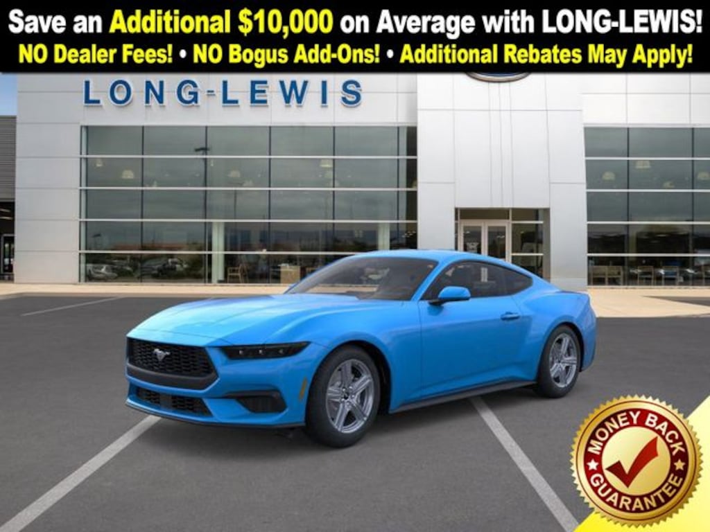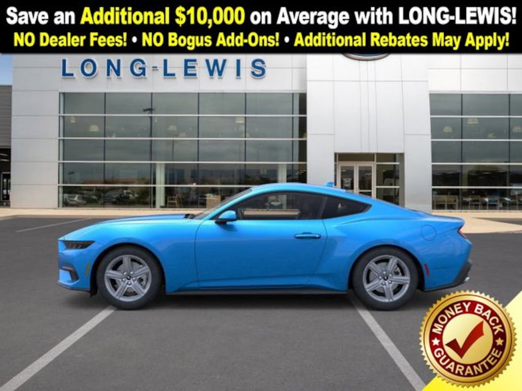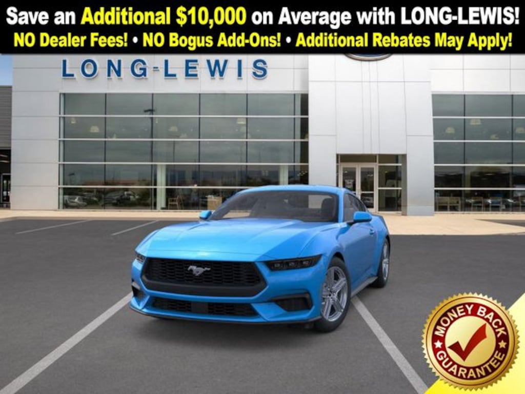 Grabber Blue Metallic 2026 Ford Mustang EcoBoost RWD 10-Speed Automatic EcoBoost 2.3L I4 GTDi DOHC Turbocharged VCT ABS brakes, Alloy wheels, Compass, Electronic Stability Control, Front dual zone A/C, Illuminated entry, Low tire pressure warning, Remote keyless entry, Traction control.