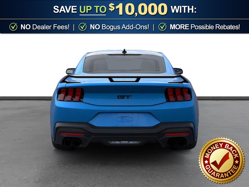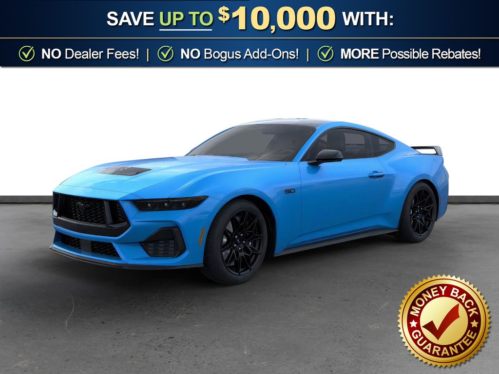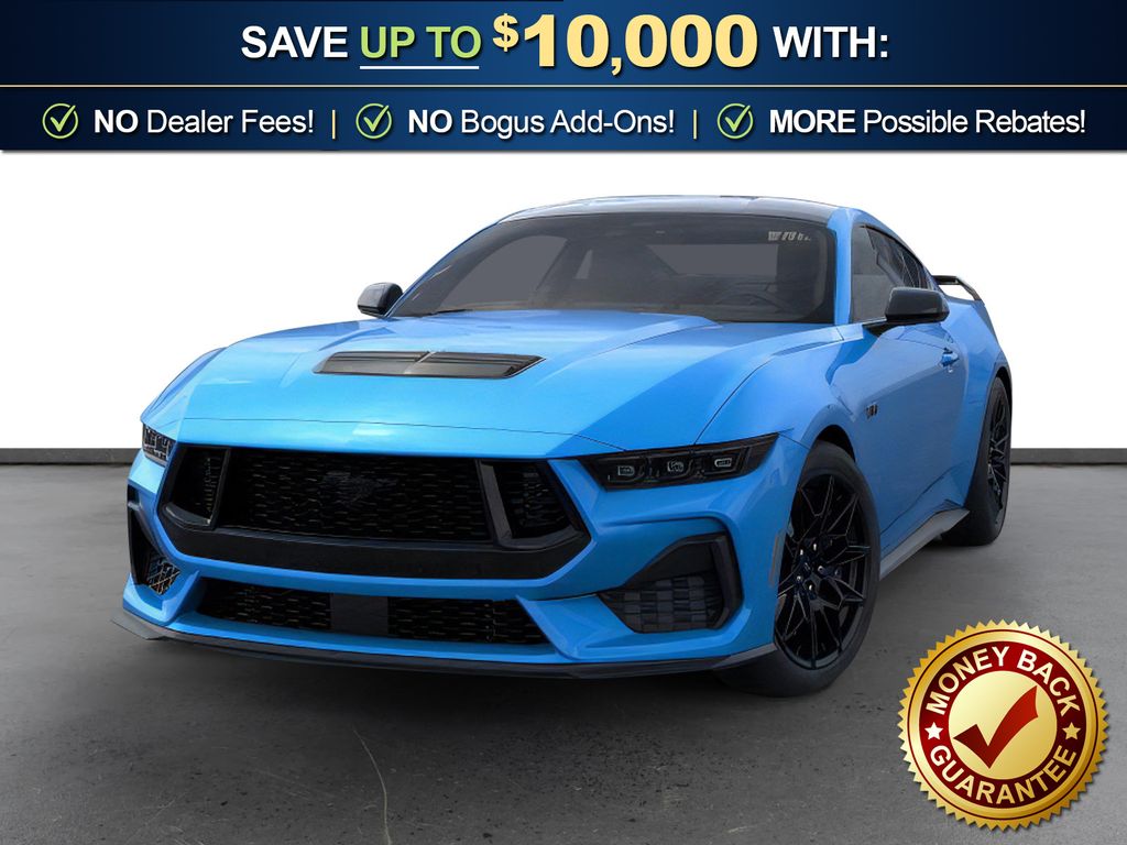 Grabber Blue Metallic 2026 Ford Mustang GT NFC RWD 10-Speed Automatic 5.0L V8 Ti-VCT 1st Row Carpeted Black Floor Mats, 4-Wheel Disc Brakes, ABS brakes, Active Valve Performance Exhaust, Air Conditioning, Alloy wheels, AM/FM Stereo, Auto High-beam Headlights, Automatic temperature control, Black Mirror Caps, Brake assist, Bumpers: body-color, Cloth Bucket Seats, Compass, Delay-off headlights, Driver door bin, Driver vanity mirror, Dual front impact airbags, Dual front side impact airbags, Electronic Stability Control, Emergency communication system: 911 Assist, Exterior Parking Camera Rear, Four wheel independent suspension, Front anti-roll bar, Front Bucket Seats, Front Center Armrest, Front dual zone A/C, Front reading lights, Fully automatic headlights, GT Performance Package, Illuminated entry, International Orange Seat Belt, Knee airbag, Leather Shift Knob, Leather steering wheel, Low tire pressure warning, Mustang Nite Pony Package, Occupant sensing airbag, Outside temperature display, Overhead airbag, Overhead console, Painted High Gloss Black/Carbon Black Grille, Panic alarm, Passenger door bin, Passenger vanity mirror, Power door mirrors, Power steering, Power windows, Radio data system, Rain sensing wipers, Rear anti-roll bar, Rear Parking Sensors, Rear window defroster, Remote keyless entry, Speed control, Speed-sensing steering, Speed-Sensitive Wipers, Split folding rear seat, Sport steering wheel, Steering wheel mounted audio controls, SYNC 4, Tachometer, Telescoping steering wheel, Tilt steering wheel, Traction control, Trip computer, Unique Chassis Tuning, Variably intermittent wipers, Voltmeter, Wedge Decklid Spoiler.