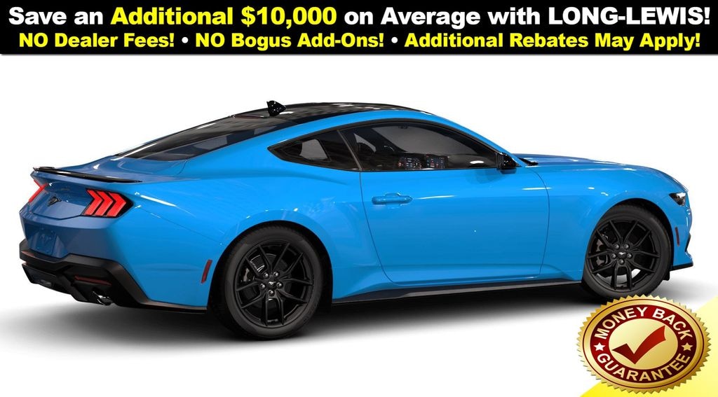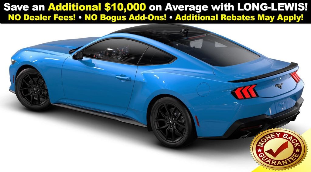 Dealer Discount of $1,874 off MSRP Grabber Blue Metallic 2026 Ford Mustang NFC RWD 10-Speed Automatic EcoBoost 2.3L I4 GTDi DOHC Turbocharged VCT 1st Row Carpeted Black Floor Mats, 4-Wheel Disc Brakes, ABS brakes, Air Conditioning, Alloy wheels, AM/FM Stereo, Auto High-beam Headlights, Automatic temperature control, Black Front & Rear Pony Badges, Black Mirror Caps, Brake assist, Bumpers: body-color, Compass, Delay-off headlights, Driver door bin, Driver vanity mirror, Dual front impact airbags, Dual front side impact airbags, Electronic Stability Control, Emergency communication system: 911 Assist, Exterior Parking Camera Rear, Four wheel independent suspension, Front anti-roll bar, Front Bucket Seats, Front Center Armrest, Front dual zone A/C, Front reading lights, Fully automatic headlights, Illuminated entry, Internet access capable: FordPass Connect, Knee airbag, Leather Shift Knob, Low tire pressure warning, Mustang Nite Pony Package, Occupant sensing airbag, Outside temperature display, Overhead airbag, Overhead console, Painted Black Roof, Panic alarm, Passenger door bin, Passenger vanity mirror, Power door mirrors, Power steering, Power windows, Radio data system, Rain sensing wipers, Rear anti-roll bar, Rear Parking Sensors, Rear window defroster, Remote keyless entry, Speed control, Speed-sensing steering, Speed-Sensitive Wipers, Split folding rear seat, Sport steering wheel, Steering wheel mounted audio controls, SYNC 4, Tachometer, Telescoping steering wheel, Tilt steering wheel, Traction control, Trip computer, Variably intermittent wipers, Voltmeter, Wedge Decklid Spoiler, Wheels: 18" x 8" Painted Shadow Silver Cast Alum, Wheels: 19" x 8.5" Ebony Black-Painted Aluminum.