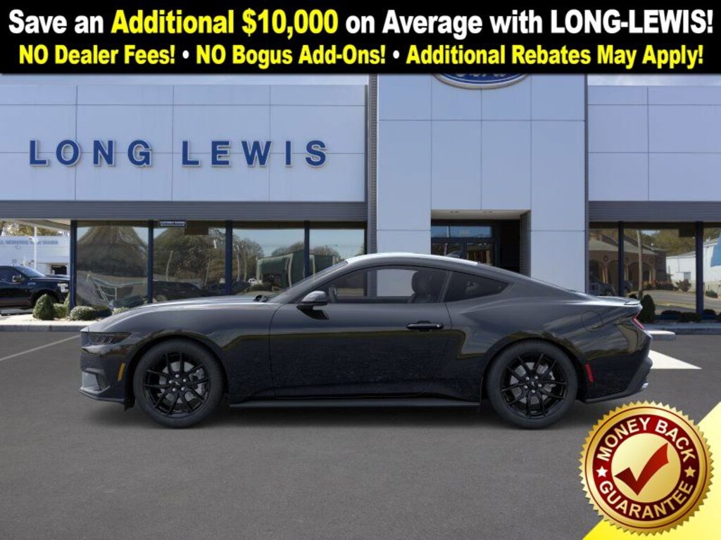 Shadow Black 2026 Ford Mustang NFC RWD 10-Speed Automatic EcoBoost 2.3L I4 GTDi DOHC Turbocharged VCT 1st Row Carpeted Black Floor Mats, 4-Wheel Disc Brakes, ABS brakes, Air Conditioning, Alloy wheels, AM/FM Stereo, Auto High-beam Headlights, Automatic temperature control, Black Front & Rear Pony Badges, Black Mirror Caps, Brake assist, Bumpers: body-color, Compass, Delay-off headlights, Driver door bin, Driver vanity mirror, Dual front impact airbags, Dual front side impact airbags, Electronic Stability Control, Emergency communication system: 911 Assist, Exterior Parking Camera Rear, Four wheel independent suspension, Front anti-roll bar, Front Bucket Seats, Front Center Armrest, Front dual zone A/C, Front reading lights, Fully automatic headlights, Illuminated entry, Internet access capable: FordPass Connect, Knee airbag, Leather Shift Knob, Low tire pressure warning, Mustang Nite Pony Package, Occupant sensing airbag, Outside temperature display, Overhead airbag, Overhead console, Painted Black Roof, Panic alarm, Passenger door bin, Passenger vanity mirror, Power door mirrors, Power steering, Power windows, Radio data system, Rain sensing wipers, Rear anti-roll bar, Rear Parking Sensors, Rear window defroster, Remote keyless entry, Speed control, Speed-sensing steering, Speed-Sensitive Wipers, Split folding rear seat, Sport steering wheel, Steering wheel mounted audio controls, SYNC 4, Tachometer, Telescoping steering wheel, Tilt steering wheel, Traction control, Trip computer, Variably intermittent wipers, Voltmeter, Wedge Decklid Spoiler, Wheels: 18" x 8" Painted Shadow Silver Cast Alum, Wheels: 19" x 8.5" Ebony Black-Painted Aluminum.