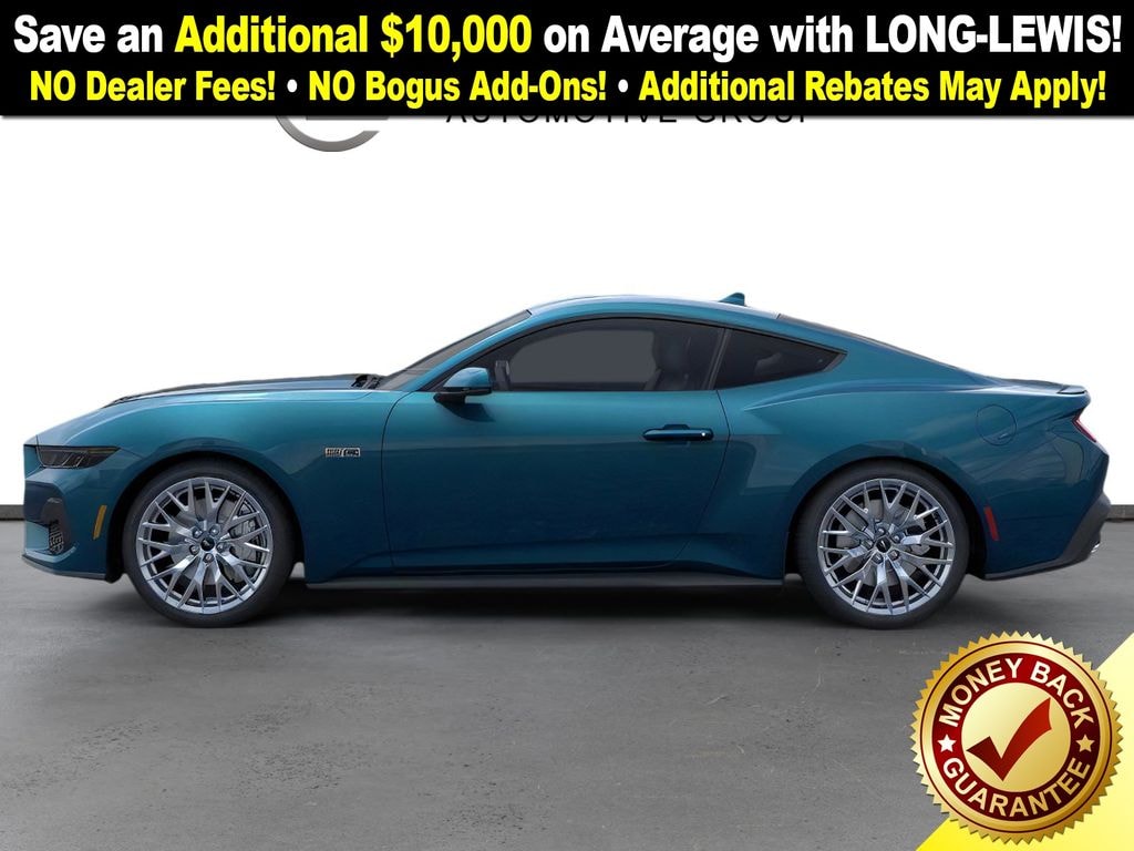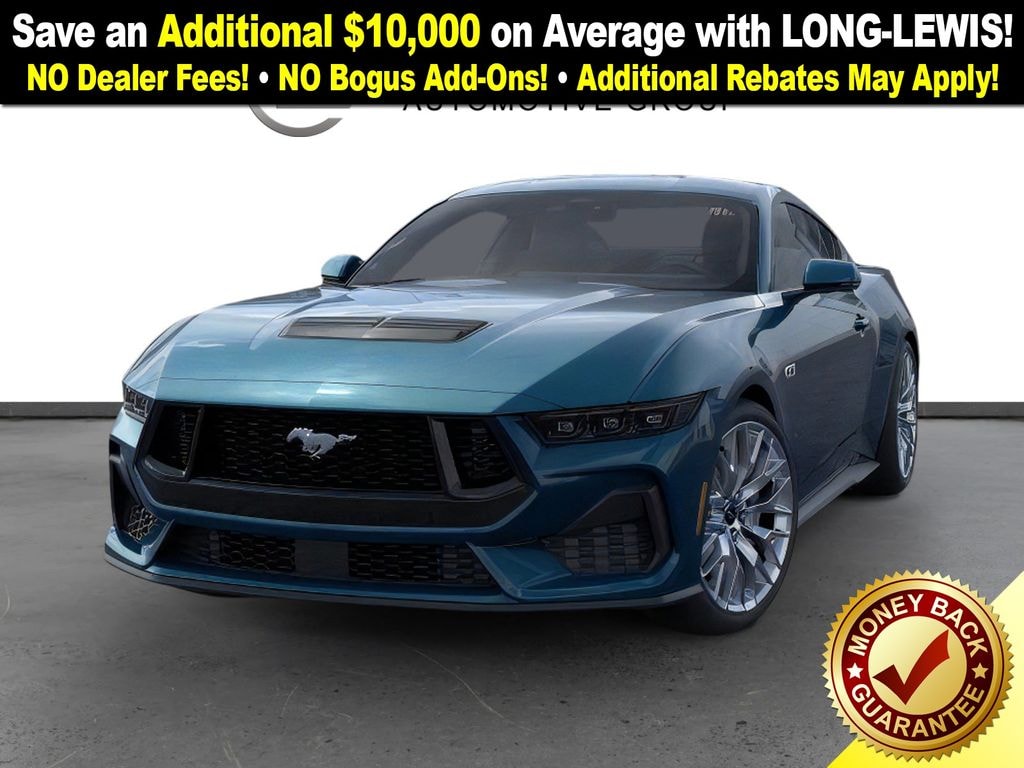 Adriatic Blue Metallic 2026 Ford Mustang NFC RWD 5.0L V8 Ti-VCT 4-Wheel Disc Brakes, ABS brakes, Air Conditioning, Alloy wheels, AM/FM Stereo, Auto High-beam Headlights, Automatic temperature control, Brake assist, Bumpers: body-color, Compass, Delay-off headlights, Driver door bin, Driver vanity mirror, Dual front impact airbags, Dual front side impact airbags, Electronic Stability Control, Emergency communication system: 911 Assist, Exterior Parking Camera Rear, Four wheel independent suspension, Front anti-roll bar, Front Bucket Seats, Front Center Armrest, Front dual zone A/C, Front reading lights, Fully automatic headlights, Illuminated entry, Knee airbag, Leather Shift Knob, Leather steering wheel, Low tire pressure warning, Occupant sensing airbag, Outside temperature display, Overhead airbag, Overhead console, Panic alarm, Passenger door bin, Passenger vanity mirror, Power door mirrors, Power steering, Power windows, Radio data system, Rain sensing wipers, Rear anti-roll bar, Rear Parking Sensors, Rear window defroster, Remote keyless entry, Speed control, Speed-sensing steering, Speed-Sensitive Wipers, Split folding rear seat, Sport steering wheel, Steering wheel mounted audio controls, SYNC 4, Tachometer, Telescoping steering wheel, Tilt steering wheel, Traction control, Trip computer, Variably intermittent wipers, Voltmeter.