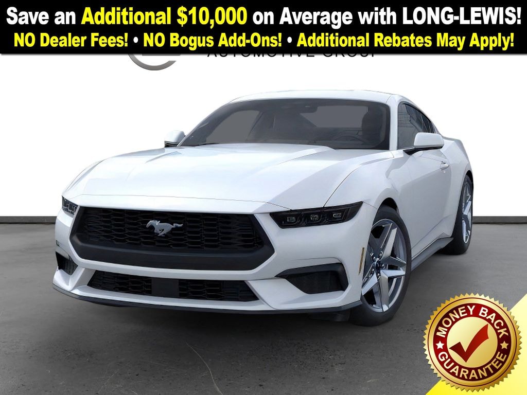 Oxford White 2026 Ford Mustang NFC RWD 10-Speed Automatic EcoBoost 2.3L I4 GTDi DOHC Turbocharged VCT 1st Row Carpeted Black Floor Mats, 4-Wheel Disc Brakes, ABS brakes, Air Conditioning, Alloy wheels, AM/FM Stereo, Auto High-beam Headlights, Automatic temperature control, Brake assist, Bumpers: body-color, Compass, Delay-off headlights, Driver door bin, Driver vanity mirror, Dual front impact airbags, Dual front side impact airbags, Electronic Stability Control, Emergency communication system: 911 Assist, Exterior Parking Camera Rear, Four wheel independent suspension, Front anti-roll bar, Front Bucket Seats, Front Center Armrest, Front dual zone A/C, Front reading lights, Fully automatic headlights, Illuminated entry, Knee airbag, Leather Shift Knob, Low tire pressure warning, Occupant sensing airbag, Outside temperature display, Overhead airbag, Overhead console, Panic alarm, Passenger door bin, Passenger vanity mirror, Power door mirrors, Power steering, Power windows, Radio data system, Rain sensing wipers, Rear anti-roll bar, Rear Parking Sensors, Rear window defroster, Remote keyless entry, Speed control, Speed-sensing steering, Speed-Sensitive Wipers, Split folding rear seat, Sport steering wheel, Steering wheel mounted audio controls, SYNC 4, Tachometer, Telescoping steering wheel, Tilt steering wheel, Traction control, Trip computer, Variably intermittent wipers, Voltmeter, Wheels: 18" x 8" Painted Shadow Silver Cast Aluminum, Wheels: 19" x 8.5" Premier Polished Aluminum.