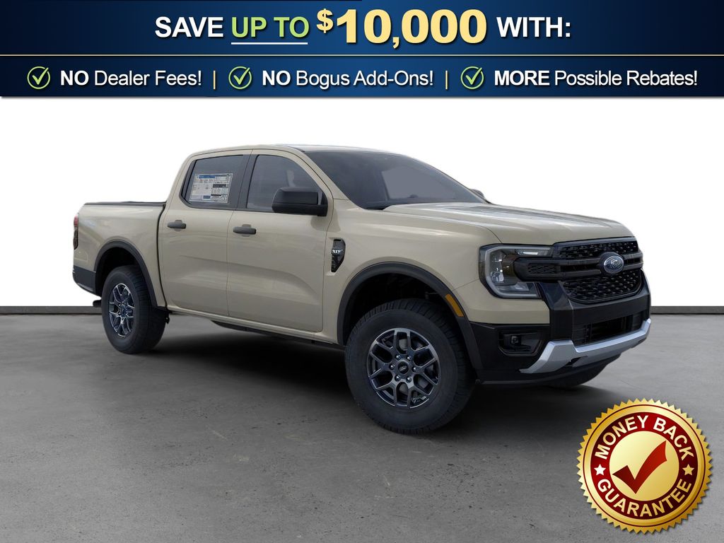 Desert Sand 2026 Ford Ranger XLT NFT 4WD 10-Speed Automatic EcoBoost 2.3L I4 GTDi DOHC Turbocharged VCT 4WD, 3.73 Axle Ratio, 4-Wheel Disc Brakes, 6 Speakers, ABS brakes, Air Conditioning, Alloy wheels, AM/FM radio: SiriusXM with 360L, AM/FM Stereo, Auto High-beam Headlights, Auto-dimming Rear-View mirror, Brake assist, Class IV Trailer Hitch Receiver, Cloth Front Bucket Seats, Compass, Delay-off headlights, Driver door bin, Driver vanity mirror, Dual front impact airbags, Dual front side impact airbags, Electronic Stability Control, Emergency communication system: SYNC 4 911 Assist, Front anti-roll bar, Front Bucket Seats, Front Center Armrest, Front fog lights, Front License Plate Bracket, Front reading lights, Front wheel independent suspension, Fully automatic headlights, Gray Painted Center Bar and Grille Surround, Gray Painted Front Fascia and Rear Bumper, Illuminated entry, Leather Shift Knob, Low tire pressure warning, Navigation system: Connected Navigation, Occupant sensing airbag, Outside temperature display, Overhead airbag, Overhead console, Panic alarm, Passenger door bin, Passenger vanity mirror, Power door mirrors, Power steering, Power windows, Rear reading lights, Rear seat center armrest, Rear step bumper, Rear window defroster, Remote keyless entry, Security system, SiriusXM with 360L and 3-Month Trial Subscription, Speed control, Speed-sensing steering, Sport Appearance Package, Sport Box Decal, Steering wheel mounted audio controls, SYNC 4A with Connected Navigation, Telescoping steering wheel, Tilt steering wheel, Traction control, Trailer Tow Package, Trip computer, Variably intermittent wipers, Voltmeter, Wheels: 17 Inch Gray-Painted Aluminum Alloy Sport, 4WD.