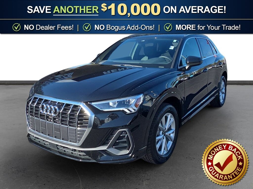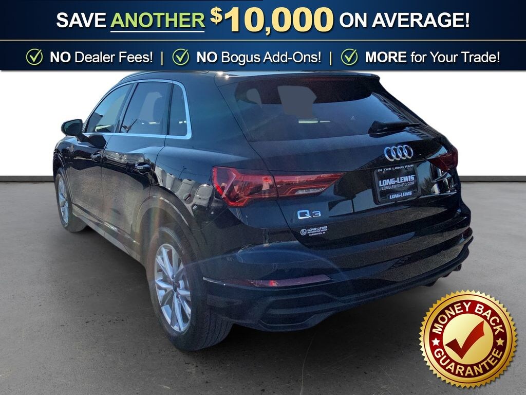 10 Speakers, 4-Wheel Disc Brakes, ABS brakes, Air Conditioning, Alloy wheels, AM/FM radio, Audi smartphone interface (Apple CarPlay/Android Auto), Auto High-beam Headlights, Automatic temperature control, Brake assist, Bumpers: body-color, Delay-off headlights, Driver door bin, Driver vanity mirror, Dual front impact airbags, Dual front side impact airbags, Electronic Stability Control, Emergency communication system: Audi connect CARE, Exterior Parking Camera Rear, Four wheel independent suspension, Front anti-roll bar, Front Bucket Seats, Front Center Armrest, Front dual zone A/C, Front fog lights, Front reading lights, Fully automatic headlights, Heated door mirrors, Heated Front Bucket Seats, Heated front seats, Illuminated entry, Knee airbag, Leather Seating Surfaces, Leather Shift Knob, Leather steering wheel, Low tire pressure warning, Occupant sensing airbag, Outside temperature display, Overhead airbag, Overhead console, Panic alarm, Passenger door bin, Passenger vanity mirror, Power door mirrors, Power driver seat, Power Liftgate, Power moonroof: Panoramic, Power passenger seat, Power steering, Power windows, Radio data system, Radio: Audi Sound System, Rain sensing wipers, Rear air conditioning, Rear anti-roll bar, Rear reading lights, Rear seat center armrest, Rear window defroster, Rear window wiper, Remote keyless entry, Speed control, Speed-sensing steering, Split folding rear seat, Spoiler, Steering wheel mounted audio controls, Tachometer, Telescoping steering wheel, Tilt steering wheel, Traction control, Trip computer, Turn signal indicator mirrors, Variably intermittent wipers, Wheels: 18" 5-V-Spoke-S Design. 2025 Audi Q3 Premium S Line quattro