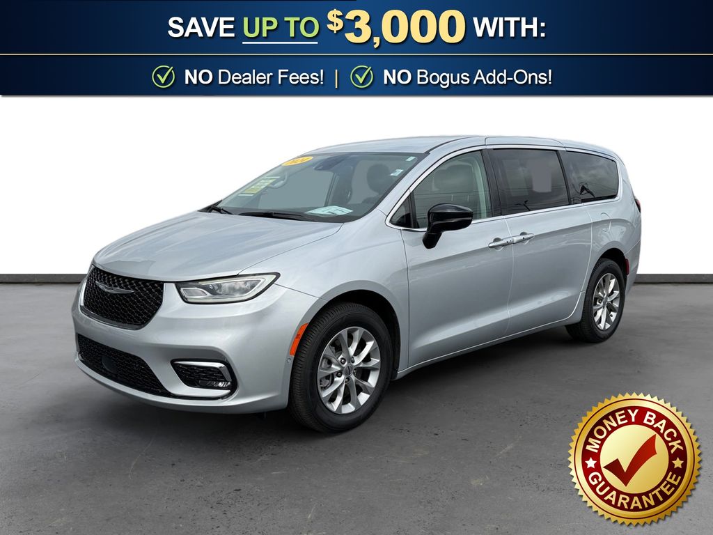 10.1" Touchscreen Display, 18" x 7.5" Painted Aluminum Wheels, 3.73 Axle Ratio, 360 Surround View Camera System, 3rd row seats: split-bench, 4-Wheel Disc Brakes, 6 Speakers, ABS brakes, Air Conditioning, Alloy wheels, AM/FM radio: SiriusXM, Apple CarPlay, Apple CarPlay/Android Auto, Automatic temperature control, AWD Suspension, Black Seats, Brake assist, Bumpers: body-color, Caprice Leatherette Bucket Seats, Compass, Delay-off headlights, Disassociated Touchscreen Display, Driver door bin, Driver vanity mirror, Driver's Seat Mounted Armrest, Dual front impact airbags, Dual front side impact airbags, Electronic Stability Control, Four wheel independent suspension, Front anti-roll bar, Front Bucket Seats, Front dual zone A/C, Front fog lights, Front reading lights, Fully automatic headlights, Google Android Auto, GPS Antenna Input, Heated door mirrors, Heated front seats, Heated steering wheel, Illuminated entry, Integrated Active Noise Cancellation, Integrated Center Stack Radio, Knee airbag, Low tire pressure warning, Memory seat, Occupant sensing airbag, Outside temperature display, Overhead airbag, Overhead console, Panic alarm, Parallel & Perpendicular Park Assist w/Stop, ParkSense Front/Rear Park Assist w/Stop, ParkView Rear Back-Up Camera, Passenger door bin, Passenger seat mounted armrest, Passenger vanity mirror, Power door mirrors, Power driver seat, Power Liftgate, Power steering, Power windows, Quick Order Package 27L, Radio data system, Radio: Uconnect 5 w/10.1" Display, Rain sensing wipers, Rear air conditioning, Rear reading lights, Rear window defroster, Rear window wiper, Reclining 3rd row seat, Remote keyless entry, Safety Sphere, Security system, Speed control, Split folding rear seat, Spoiler, Steering wheel mounted audio controls, Tachometer, Telescoping steering wheel, Tilt steering wheel, Traction control, Trip computer, Turn signal indicator mirrors, USB Host Flip, Variably intermittent wipers, Voltmeter. 2024 Chrysler Pacifica Touring L