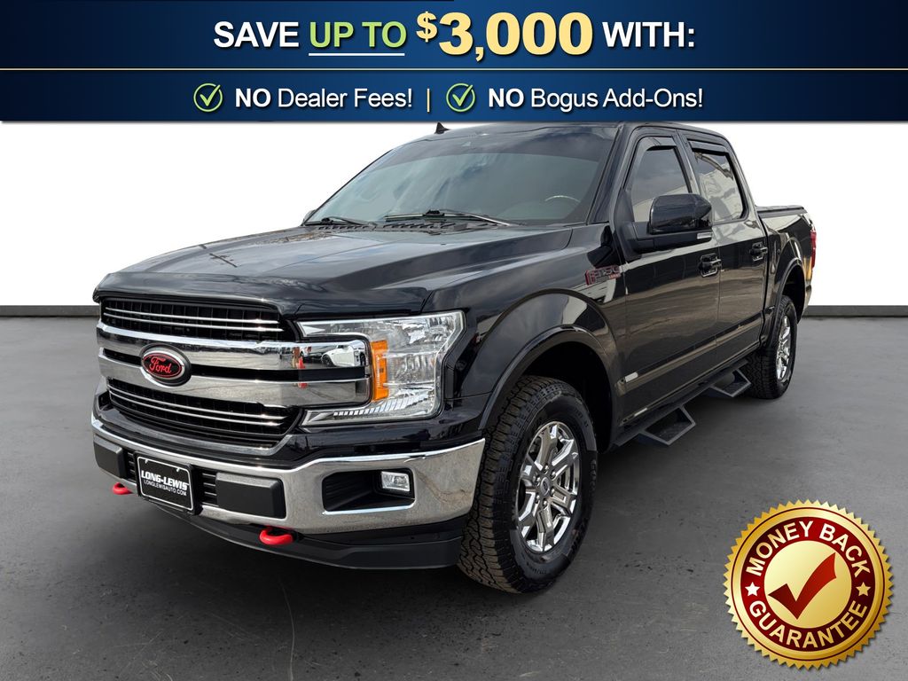 2020 Ford F-150 Lariat Black Metallic Lariat 4WD 10-Speed Automatic 5.0L V8 4WD, 110V/400W Outlet, 18" Machined-Aluminum Wheels, 3.31 Axle Ratio, 4-Wheel Disc Brakes, 7 Speakers, ABS brakes, Adjustable pedals, Air Conditioning, Alloy wheels, AM/FM radio: SiriusXM, Auto High-beam Headlights, Auto-dimming door mirrors, Auto-dimming Rear-View mirror, Automatic temperature control, Brake assist, Bumpers: chrome, Class IV Trailer Hitch Receiver, Compass, Delay-off headlights, Driver door bin, Driver vanity mirror, Dual front impact airbags, Dual front side impact airbags, Electronic Stability Control, Emergency communication system: SYNC 3 911 Assist, Equipment Group 500A Base, Exterior Parking Camera Rear, Front anti-roll bar, Front Center Armrest w/Storage, Front dual zone A/C, Front fog lights, Front License Plate Bracket, Front reading lights, Front wheel independent suspension, Fully automatic headlights, GVWR: 7,050 lbs Payload Package, Heated door mirrors, Heated front seats, Illuminated entry, Leather-Trimmed 40/20/40 Front Seat, Low tire pressure warning, Memory seat, Occupant sensing airbag, Outside temperature display, Overhead airbag, Overhead console, Panic alarm, Passenger door bin, Passenger vanity mirror, Pedal memory, Power door mirrors, Power driver seat, Power passenger seat, Power steering, Power windows, Radio data system, Radio: AM/FM Stereo w/6 Speakers, Rear reading lights, Rear seat center armrest, Rear step bumper, Rear window defroster, Remote keyless entry, Security system, SiriusXM Radio, Speed control, Speed-sensing steering, Split folding rear seat, Steering wheel mounted audio controls, SYNC 3, Tachometer, Telescoping steering wheel, Tilt steering wheel, Traction control, Trip computer, Turn signal indicator mirrors, Variably intermittent wipers, Ventilated front seats, Voice-Activated Touchscreen Navigation, Voltmeter, 4WD.