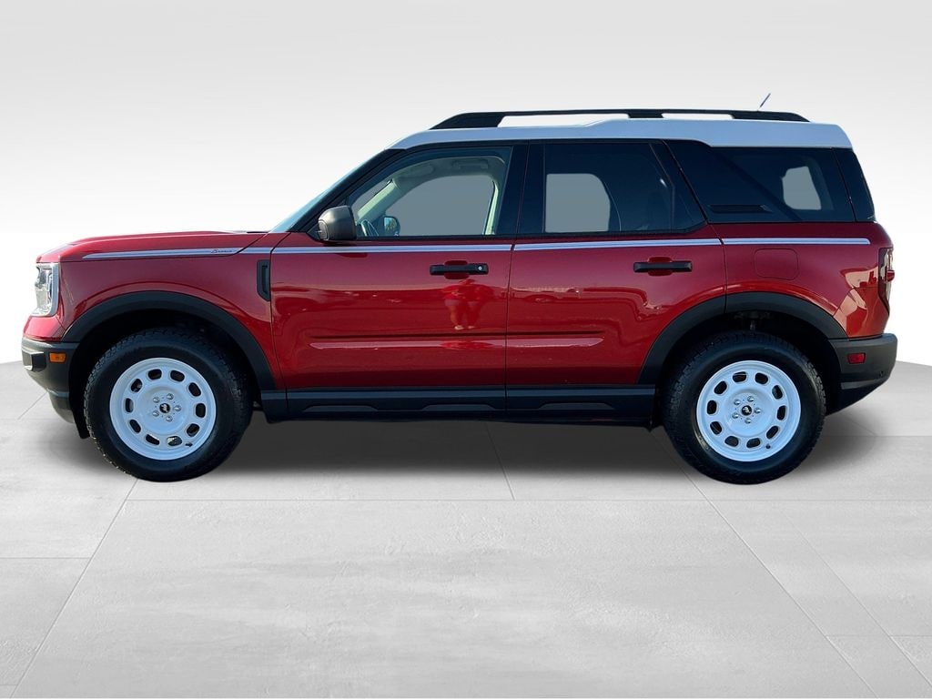 2023 Ford Bronco Sport Heritage Hot Pepper Red Tinted Clearcoat Heritage 4WD 8-Speed Automatic 1.5L EcoBoost 3.80 Axle Ratio, 4-Wheel Disc Brakes, 6 Speakers, ABS brakes, Air Conditioning, Alloy wheels, AM/FM radio: SiriusXM, AM/FM Stereo, Auto High-beam Headlights, Automatic temperature control, Brake assist, Cargo Management System, Compass, Delay-off headlights, Driver door bin, Driver vanity mirror, Dual front impact airbags, Dual front side impact airbags, Electronic Stability Control, Emergency communication system: SYNC 3 911 Assist, Equipment Group 250A, Four wheel independent suspension, Front anti-roll bar, Front Bucket Seats, Front Center Armrest, Front fog lights, Front License Plate Bracket, Front reading lights, Fully automatic headlights, Heated door mirrors, Heated Front Seats, Heritage Convenience Package, Illuminated entry, Knee airbag, Leather-Wrapped Steering Wheel, Low tire pressure warning, Occupant sensing airbag, Outside temperature display, Overhead airbag, Overhead console, Panic alarm, Passenger door bin, Passenger vanity mirror, Plaid Cloth Front Bucket Seats, Power door mirrors, Power steering, Power windows, Radio data system, Rear anti-roll bar, Rear Parking Sensors, Rear reading lights, Rear seat center armrest, Rear window defroster, Rear window wiper, Remote keyless entry, Security system, SiriusXM, Speed control, Speed-sensing steering, Speed-Sensitive Wipers, Split folding rear seat, Steering wheel mounted audio controls, SYNC 3 Communications & Entertainment System, SYNC 3/Apple CarPlay/Android Auto, Tachometer, Telescoping steering wheel, Tilt steering wheel, Traction control, Trip computer, Universal Garage Door Opener (UGDO), Variably intermittent wipers, Wheels: 17" Oxford White-Painted Aluminum, Wireless Charging Pad.