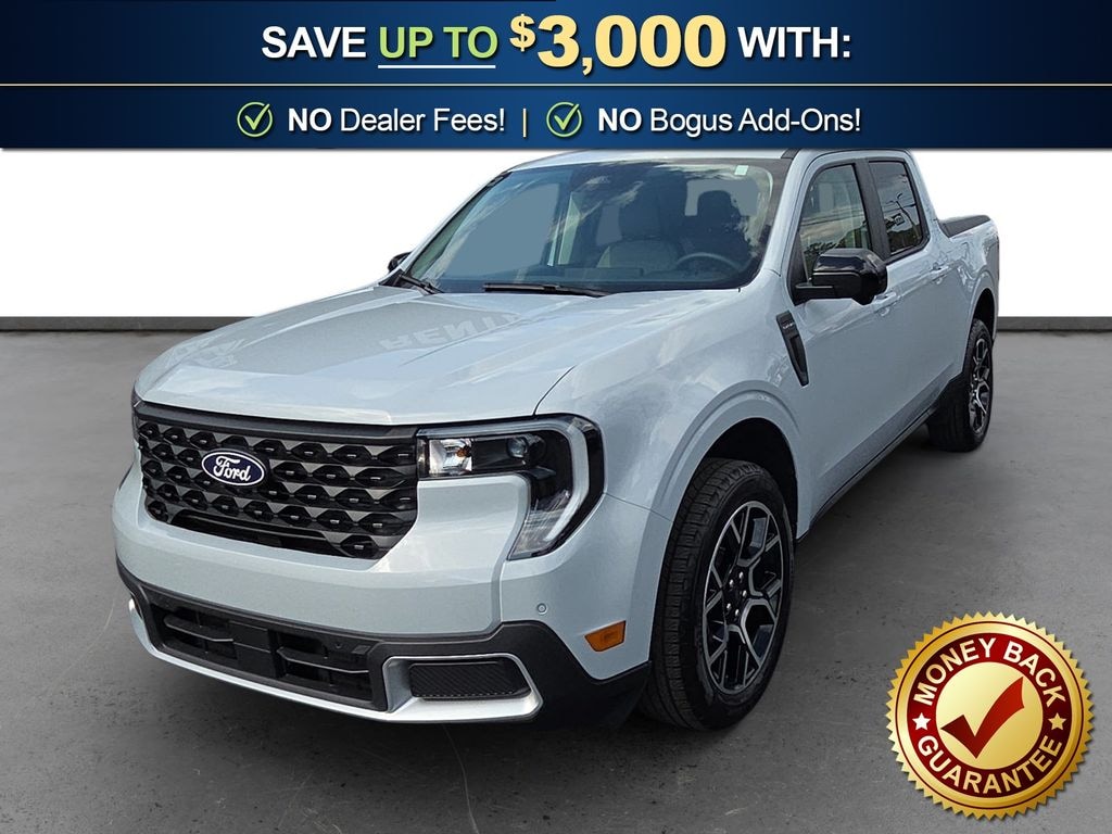 2.91 Axle Ratio, 4-Wheel Disc Brakes, 4K Tow Package, 8 Speakers, ABS brakes, ActiveX Trimmed Heated Front Bucket Seats, Air Conditioning, Alloy wheels, AM/FM radio: SiriusXM with 360L, Apple CarPlay/Android Auto, Auto High-beam Headlights, Automatic temperature control, Brake assist, Bumpers: body-color, Compass, Delay-off headlights, Driver door bin, Driver vanity mirror, Dual front impact airbags, Dual front side impact airbags, Electronic Stability Control, Emergency communication system: SYNC 4 911 Assist, Equipment Group 502A, Exterior Parking Camera Rear, Four wheel independent suspension, Front anti-roll bar, Front Bucket Seats, Front Center Armrest, Front dual zone A/C, Front reading lights, Fully automatic headlights, Heated door mirrors, Heated front seats, Heated steering wheel, Illuminated entry, Internet access capable: FordPass Connect 5G, Knee airbag, Low tire pressure warning, Navigation system: Connected Navigation, Occupant sensing airbag, Outside temperature display, Overhead airbag, Overhead console, Panic alarm, Passenger door bin, Passenger vanity mirror, Power door mirrors, Power driver seat, Power steering, Power windows, Radio data system, Radio: B&O Sound System by Bang & Olufsen, Rear anti-roll bar, Rear seat center armrest, Rear step bumper, Remote keyless entry, Security system, SiriusXM w/360L, Speed control, Speed-sensing steering, Steering wheel mounted audio controls, SYNC 4 w/Enhanced Voice Recognition, Telescoping steering wheel, Tilt steering wheel, Traction control, Trailer Brake Controller, Trailer Hitch (Class III) 2" Receiver, Transmission Oil Cooler, Trip computer, Upgraded Cooling Fan, Wheels: 19" Machined Painted Aluminum. 2025 Ford Maverick Lariat