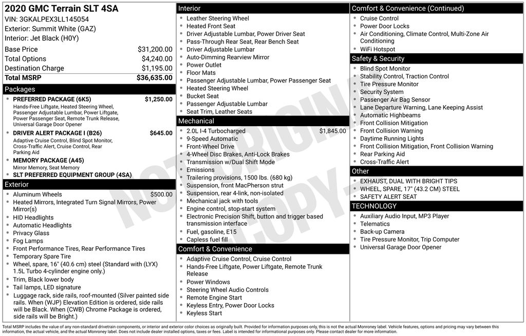 2020 GMC Terrain SLT FWD 9-Speed Automatic 2.0L Turbocharged Summit White