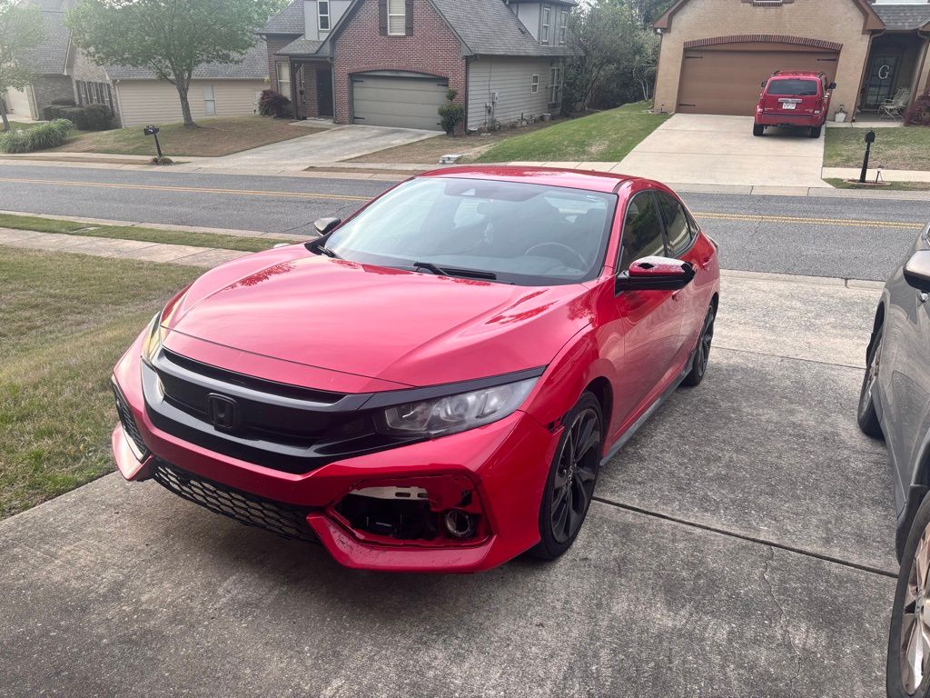 2019 Honda Civic Sport Red Sport FWD CVT 1.5L I4 DOHC 16V Cloth, 4 Speakers, 4-Wheel Disc Brakes, ABS brakes, Air Conditioning, Alloy wheels, AM/FM radio, Automatic temperature control, Brake assist, Bumpers: body-color, Delay-off headlights, Driver door bin, Driver vanity mirror, Dual front impact airbags, Dual front side impact airbags, Electronic Stability Control, Exterior Parking Camera Rear, Fabric Seating Surfaces, Forward collision: Collision Mitigation Braking System (CMBS) + FCW mitigation, Four wheel independent suspension, Front anti-roll bar, Front Bucket Seats, Front Center Armrest, Front fog lights, Front reading lights, Fully automatic headlights, Illuminated entry, Leather Shift Knob, Low tire pressure warning, Occupant sensing airbag, Outside temperature display, Overhead airbag, Panic alarm, Passenger door bin, Passenger vanity mirror, Power door mirrors, Power steering, Power windows, Radio data system, Radio: 160-Watt Audio System, Rear anti-roll bar, Rear seat center armrest, Rear window defroster, Rear window wiper, Reclining Front Bucket Seats, Remote keyless entry, Security system, Speed control, Speed-sensing steering, Split folding rear seat, Spoiler, Steering wheel mounted audio controls, Tachometer, Telescoping steering wheel, Tilt steering wheel, Traction control, Trip computer, Cloth.