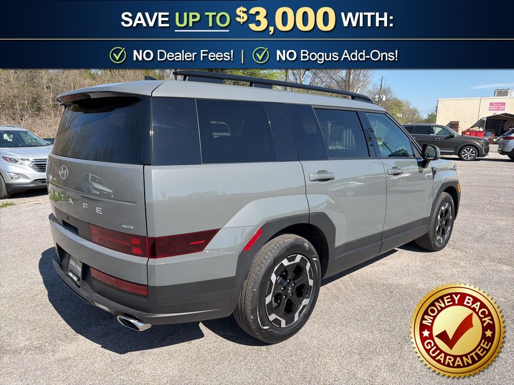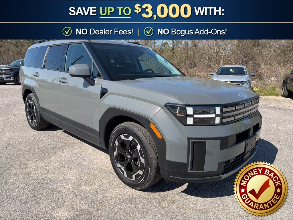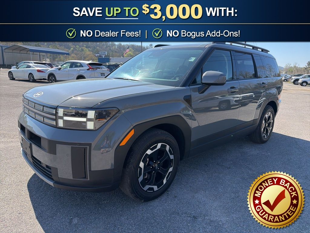 AWD, Black Premium Synthetic, 18" x 7.5J Alloy Wheels, 3rd row seats: bench, 4-Wheel Disc Brakes, 6 Speakers, ABS brakes, Air Conditioning, Alloy wheels, AM/FM radio: SiriusXM, Apple CarPlay & Android Auto, Auto High-beam Headlights, Automatic temperature control, Brake assist, Bumpers: body-color, Delay-off headlights, Driver door bin, Driver vanity mirror, Dual front impact airbags, Dual front side impact airbags, Electronic Stability Control, Emergency communication system, Exterior Parking Camera Rear, Four wheel independent suspension, Front anti-roll bar, Front Bucket Seats, Front Center Armrest, Front dual zone A/C, Front reading lights, Fully automatic headlights, H-Tex Leatherette Seat Trim, Heated door mirrors, Heated Front Bucket Seats, Heated front seats, Illuminated entry, Knee airbag, Leather steering wheel, Low tire pressure warning, Occupant sensing airbag, Option Group 01, Outside temperature display, Overhead airbag, Overhead console, Panic alarm, Passenger door bin, Passenger vanity mirror, Power door mirrors, Power driver seat, Power Liftgate, Power steering, Power windows, Radio: AM/FM/HD Display Audio, Rear anti-roll bar, Rear seat center armrest, Rear side impact airbag, Rear window defroster, Rear window wiper, Remote keyless entry, Security system, Speed control, Speed-sensing steering, Split folding rear seat, Spoiler, Steering wheel mounted audio controls, Tachometer, Telescoping steering wheel, Tilt steering wheel, Traction control, Trip computer, Turn signal indicator mirrors, Variably intermittent wipers, AWD, Black Premium Synthetic. 2026 Hyundai Santa Fe SEL