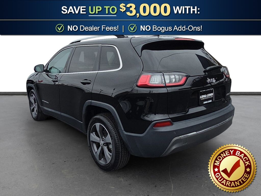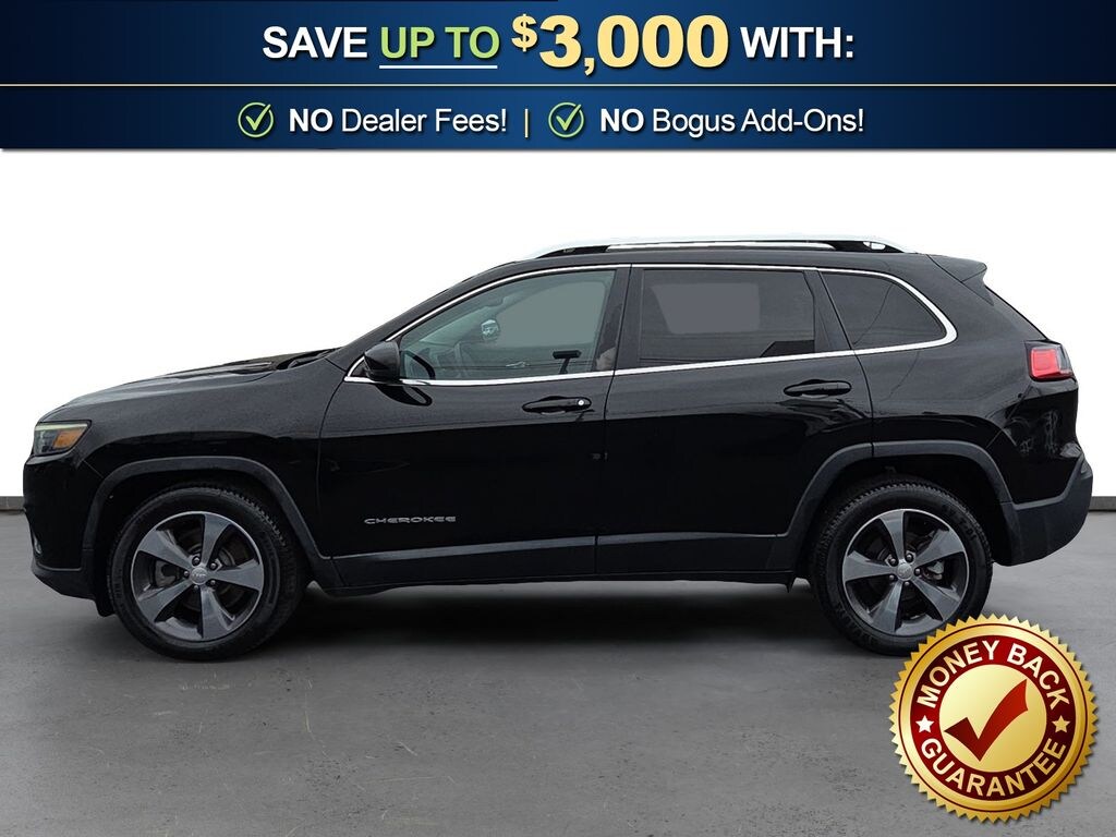 10 Speakers, 3.734 Axle Ratio, 4-Wheel Disc Brakes, 8.4" Touchscreen Display, ABS brakes, Air Conditioning, Alloy wheels, AM/FM radio: SiriusXM, Anti-whiplash front head restraints, Apple CarPlay, Apple CarPlay/Android Auto, Audio memory, Auto-dimming Rear-View mirror, Automatic temperature control, Auxiliary Transmission Oil Cooler, Brake assist, Bumpers: body-color, Compass, Delay-off headlights, Driver door bin, Driver vanity mirror, Dual front impact airbags, Dual front side impact airbags, Electronic Stability Control, Exterior Mirrors Courtesy Lamps, Exterior Mirrors w/Supplemental Signals, Four wheel independent suspension, Front anti-roll bar, Front Bucket Seats, Front Center Armrest, Front dual zone A/C, Front fog lights, Front reading lights, Fully automatic headlights, Garage door transmitter, Google Android Auto, GPS Antenna Input, Heated door mirrors, Heated front seats, Heated steering wheel, Illuminated entry, Integrated Voice Command w/Bluetooth, Knee airbag, Leather Shift Knob, Low tire pressure warning, Memory seat, Normal Duty Suspension, Occupant sensing airbag, Outside temperature display, Overhead airbag, Overhead console, Panic alarm, ParkView Rear Back-Up Camera, Passenger door bin, Passenger vanity mirror, Power door mirrors, Power driver seat, Power Liftgate, Power passenger seat, Power steering, Power windows, Premium Leather Trimmed Bucket Seats, Quick Order Package 2BG, Radio data system, Radio: Uconnect 4 w/8.4" Display, Rear anti-roll bar, Rear reading lights, Rear seat center armrest, Rear side impact airbag, Rear window defroster, Rear window wiper, Remote keyless entry, Roof rack: rails only, Security system, SiriusXM Satellite Radio, Speed control, Speed-sensing steering, Split folding rear seat, Spoiler, Steering wheel mounted audio controls, Stop-Start Multiple VSM System, Tachometer, Telescoping steering wheel, Tilt steering wheel, Traction control, Trip computer, Turn signal indicator mirrors, USB Host Flip, Variably intermittent wipers, Voltmeter, Wheels: 18" x 7" Polished/Painted Aluminum. 2019 Jeep Cherokee Limited