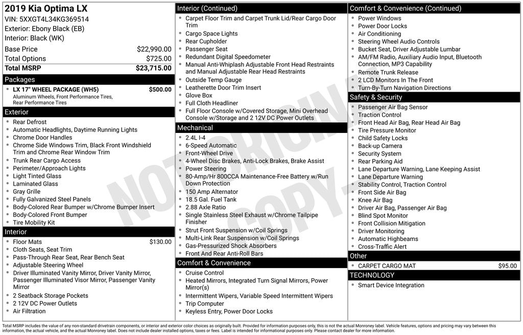 2019 Kia Optima LX Stylish, Efficient & Affordable