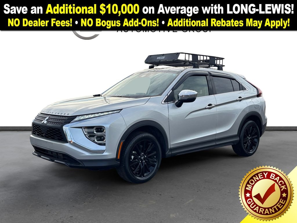 2023 Mitsubishi Eclipse Cross LE Alloy Silver Metallic LE 4WD CVT 1.5L I4 DI Turbocharged DOHC 16V LEV3-ULEV70 152hp 4-Wheel Disc Brakes, 6.39 Axle Ratio, ABS brakes, Air Conditioning, Alloy wheels, Automatic temperature control, Brake assist, Bumpers: body-color, Driver door bin, Driver vanity mirror, Dual front impact airbags, Dual front side impact airbags, Electronic Stability Control, Exterior Parking Camera Rear, Four wheel independent suspension, Front anti-roll bar, Front Bucket Seats, Front Center Armrest, Front fog lights, Front reading lights, Heated door mirrors, Illuminated entry, Knee airbag, Low tire pressure warning, Occupant sensing airbag, Outside temperature display, Overhead airbag, Overhead console, Panic alarm, Passenger door bin, Passenger vanity mirror, Power door mirrors, Power steering, Power windows, Radio data system, Rear anti-roll bar, Rear seat center armrest, Rear window defroster, Rear window wiper, Remote keyless entry, Security system, Speed control, Speed-sensing steering, Split folding rear seat, Spoiler, Steering wheel mounted audio controls, Tachometer, Telescoping steering wheel, Tilt steering wheel, Traction control, Trip computer, Turn signal indicator mirrors, Variably intermittent wipers.