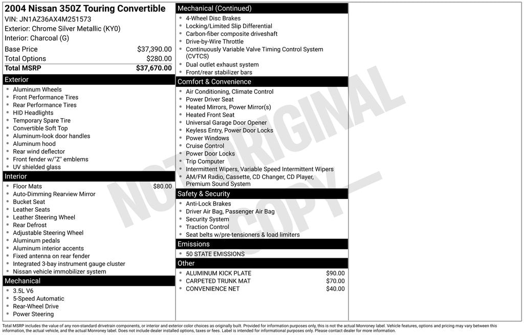 2004 Nissan 350Z Touring Roadster Timeless Style. Top-Down Fun.