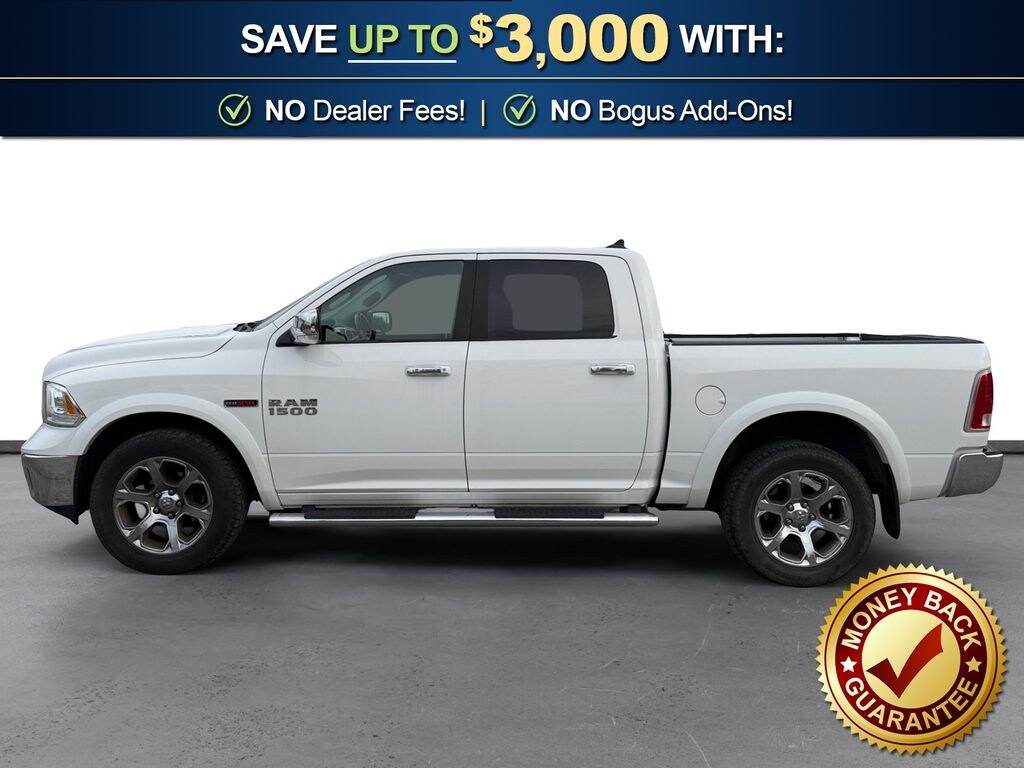 1-Yr SiriusXM Guardian Trial, 115V Auxiliary Power Outlet, 20" x 9" Chrome Clad Aluminum Wheels, 4-Wheel Disc Brakes, 6 Speakers, 8.4" Touchscreen Display, 9 Alpine Speakers w/Subwoofer (DISC), ABS brakes, Active Grille Shutters, Adjustable pedals, Air Conditioning, Alloy wheels, AM/FM radio: SiriusXM, Apple CarPlay, Apple CarPlay/Android Auto, Audio Jack Input for Mobile Devices, Audio memory, Auto High Beam Headlamp Control, Auto-dimming door mirrors, Auto-dimming Rear-View mirror, Automatic temperature control, Brake assist, Bumpers: chrome, Center Hub, Compass, Convenience Group, Delay-off headlights, Driver door bin, Driver vanity mirror, Dual front impact airbags, Dual front side impact airbags, Electronic Shift, Electronic Stability Control, Emergency communication system: SiriusXM Guardian, Folding Flat Load Floor Storage, Front anti-roll bar, Front Center Armrest w/Storage, Front dual zone A/C, Front fog lights, Front reading lights, Front wheel independent suspension, Fully automatic headlights, Garage door transmitter, Google Android Auto, GPS Antenna Input, HD Radio, Heated door mirrors, Heated Front Seats, Heated front seats, Heated steering wheel, High Back Seats, Illuminated entry, Integrated Voice Command w/Bluetooth, Keyless Enter-N-Go, Leather steering wheel, Leather Trim 40/20/40 Bench Seat, LED Bed Lighting, Low tire pressure warning, Media Hub (2 USB, AUX), Memory seat, Occupant sensing airbag, Outside temperature display, Overhead airbag, Overhead console, Panic alarm, ParkView Rear Back-Up Camera, Passenger door bin, Passenger vanity mirror, Pedal memory, Power 10-Way Memory Driver & 6-Way Passenger Seats, Power door mirrors, Power driver seat, Power passenger seat, Power steering, Power windows, Quick Order Package 28H Laramie, Radio data system, Radio: Uconnect 4C w/8.4" Display, Rain Sensitive Windshield Wipers, Rear 60/40 Split Folding Seat, Rear anti-roll bar, Rear seat center armrest, Rear step bumper, Remote keyless entry, Remote Proximity Keyless Entry, Remote Start System, Remote USB Port, Security system, SiriusXM Satellite Radio, Speed control, Split folding rear seat, Steering wheel mounted audio controls, Tachometer, Tilt steering wheel, Tip Start, Traction control, Trip computer, Turn signal indicator mirrors, USB Host Flip, Variably intermittent wipers, Ventilated Front Seats, Ventilated front seats, Voltmeter. 2018 Ram 1500 Laramie