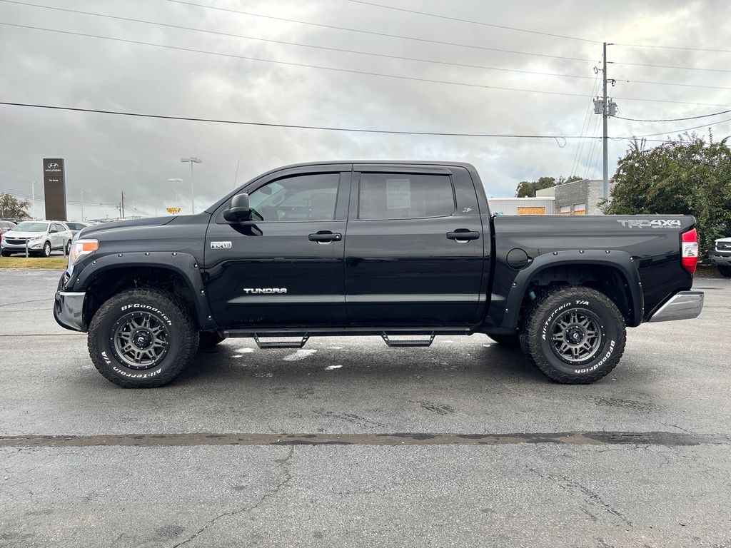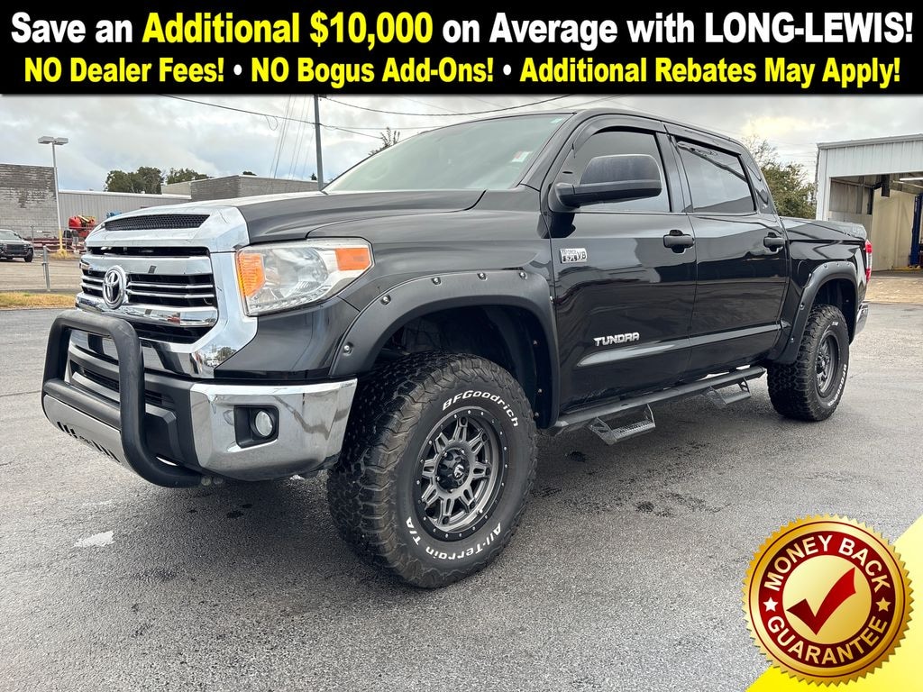 2017 Toyota Tundra Black 4WD 6-Speed Automatic Electronic with Overdrive 5.7L 8-Cylinder SMPI DOHC 4WD, 4-Wheel Disc Brakes, 4.30 Axle Ratio, ABS brakes, Air Conditioning, AM/FM radio: SiriusXM, Brake assist, CD player, Compass, Driver door bin, Driver vanity mirror, Dual front impact airbags, Dual front side impact airbags, Electronic Stability Control, Exterior Parking Camera Rear, Front anti-roll bar, Front Bucket Seats, Front fog lights, Front reading lights, Front wheel independent suspension, Heated door mirrors, Illuminated entry, Knee airbag, Low tire pressure warning, Occupant sensing airbag, Outside temperature display, Overhead airbag, Overhead console, Panic alarm, Passenger door bin, Passenger vanity mirror, Power door mirrors, Power steering, Power windows, Rear reading lights, Rear seat center armrest, Rear step bumper, Rear window defroster, Remote keyless entry, Speed control, Speed-sensing steering, Split folding rear seat, Steering wheel mounted audio controls, Tachometer, Tilt steering wheel, Traction control, Trip computer, Variably intermittent wipers, Voltmeter, 4WD.