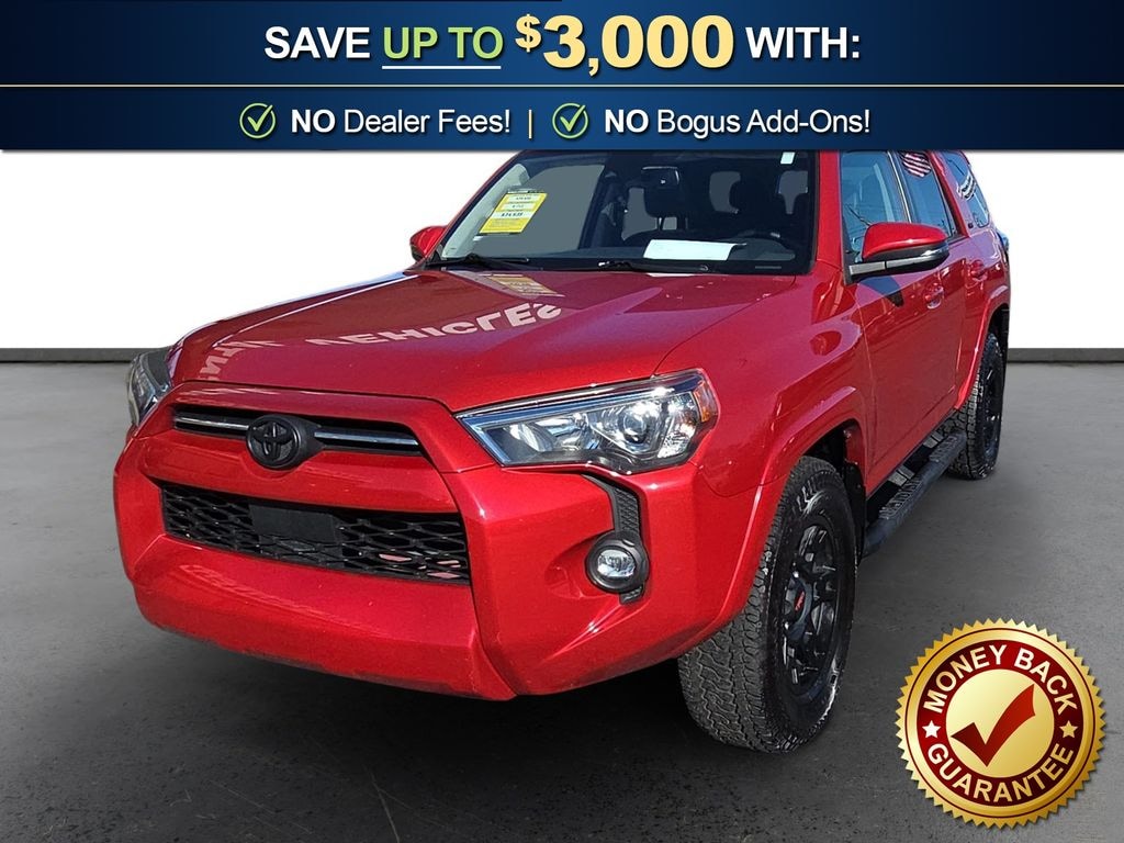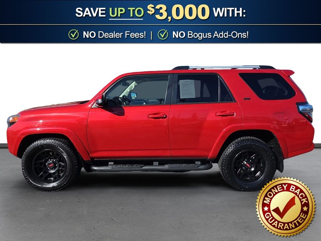 Black/Graphite w/SofTex Seat Trim, 17" 6-Spoke Alloy Wheels, 3.727 Axle Ratio, 4-Wheel Disc Brakes, 8 Speakers, ABS brakes, Air Conditioning, Alloy wheels, AM/FM radio: SiriusXM, Anti-whiplash front head restraints, Apple CarPlay/Android Auto, Auto High-beam Headlights, Auto-dimming Rear-View mirror, Brake assist, Bumpers: body-color, Compass, Driver door bin, Driver vanity mirror, Dual front impact airbags, Dual front side impact airbags, Electronic Stability Control, Emergency communication system: Safety Connect (1-year trial), Exterior Parking Camera Rear, Front anti-roll bar, Front Bucket Seats, Front Center Armrest, Front fog lights, Front reading lights, Front wheel independent suspension, Garage Door Opener, Garage door transmitter: HomeLink, Heated door mirrors, Heated Front Bucket Seats, Heated front seats, Heated Outside Rear-View Mirrors, Illuminated entry, Knee airbag, Leather Shift Knob, Leather steering wheel, Low tire pressure warning, Navigation System, Occupant sensing airbag, Outside temperature display, Overhead airbag, Overhead console, Panic alarm, Passenger door bin, Passenger vanity mirror, Power door mirrors, Power driver seat, Power passenger seat, Power steering, Power windows, Radio: Premium Audio w/Dynamic Navigation, Rear anti-roll bar, Rear seat center armrest, Rear window defroster, Rear window wiper, Remote keyless entry, Security system, SofTex Seat Trim, Speed control, Speed-sensing steering, Split folding rear seat, Spoiler, Steering wheel mounted audio controls, Tachometer, Telescoping steering wheel, Tilt steering wheel, Traction control, Trip computer, Turn signal indicator mirrors, Variably intermittent wipers, Black/Graphite w/SofTex Seat Trim. 2023 Toyota 4Runner SR5 Premium