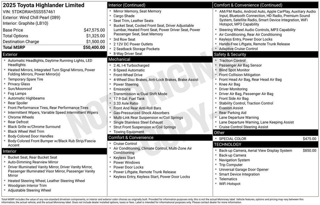 2025 Toyota Highlander FWD 8-Speed Automatic 2.4L 4-Cylinder Pearl